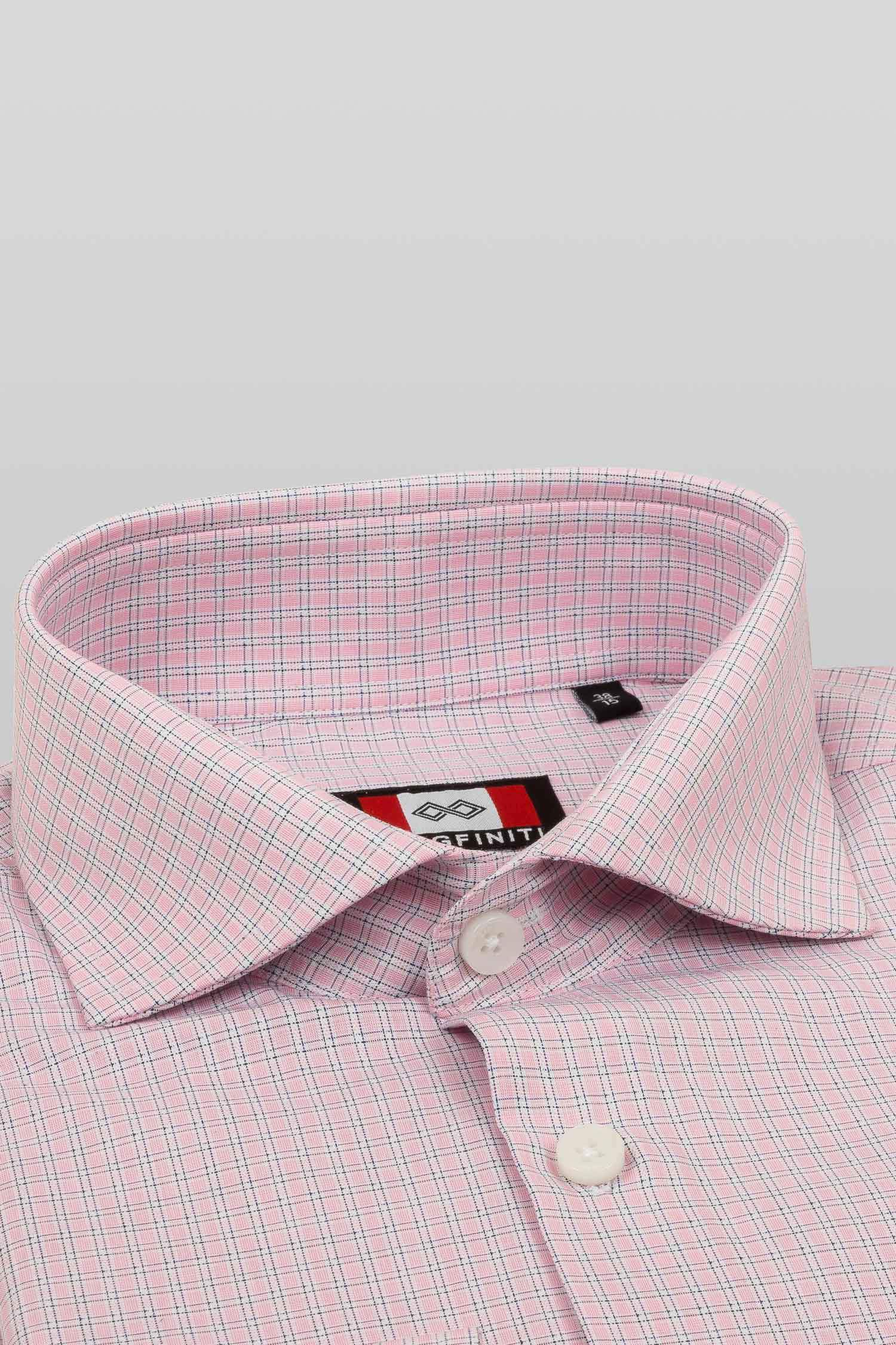 This "Erish” dress shirt by Zingfiniti is specially crafted from premium Giza cotton for exceptional comfort and luxury feel. Decorated in fine checks in pink & blue, this shirt will make a sharp addition to your weekday wardrobe. This shirt strikes an elegant balance between luxury feel and incredible performance. The shirt fabric and style gives it a contemporary, downtown appeal when ironed up or you can wear it more relaxed with a pair of jeans. This slim fit shirt features a cutaway collar and barrel cuffs with adjustable buttons. We offer complimentary Zingfiniti Sewing Kit with spare buttons & collar bones for extra care and protection. Experience the luxurious, soft and fine feel of these shirts.