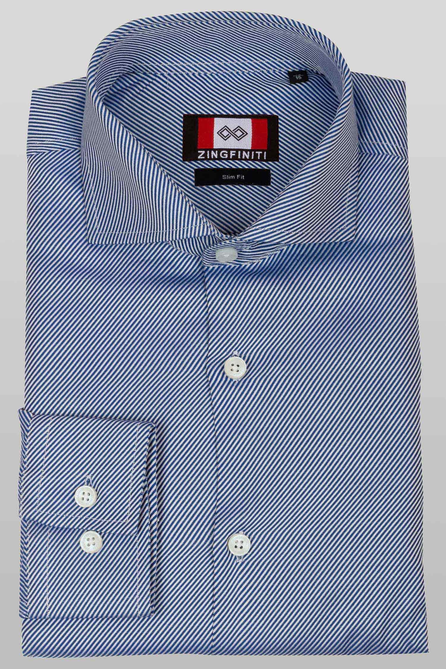 This "John” dress shirt by Zingfiniti is specially crafted from premium Giza cotton for exceptional comfort and luxury feel. Decorated in twill weave in shades of blue, this shirt will make a sharp addition to your weekday wardrobe. This shirt strikes an elegant balance between luxury feel and incredible performance. The shirt fabric and style gives it a contemporary, downtown appeal when ironed up or you can wear it more relaxed with a pair of jeans. This slim fit shirt features a cutaway collar and barrel cuffs with adjustable buttons. We offer complimentary Zingfiniti Sewing Kit with spare buttons & collar bones for extra care and protection. Experience the luxurious, soft and fine feel of these shirts.