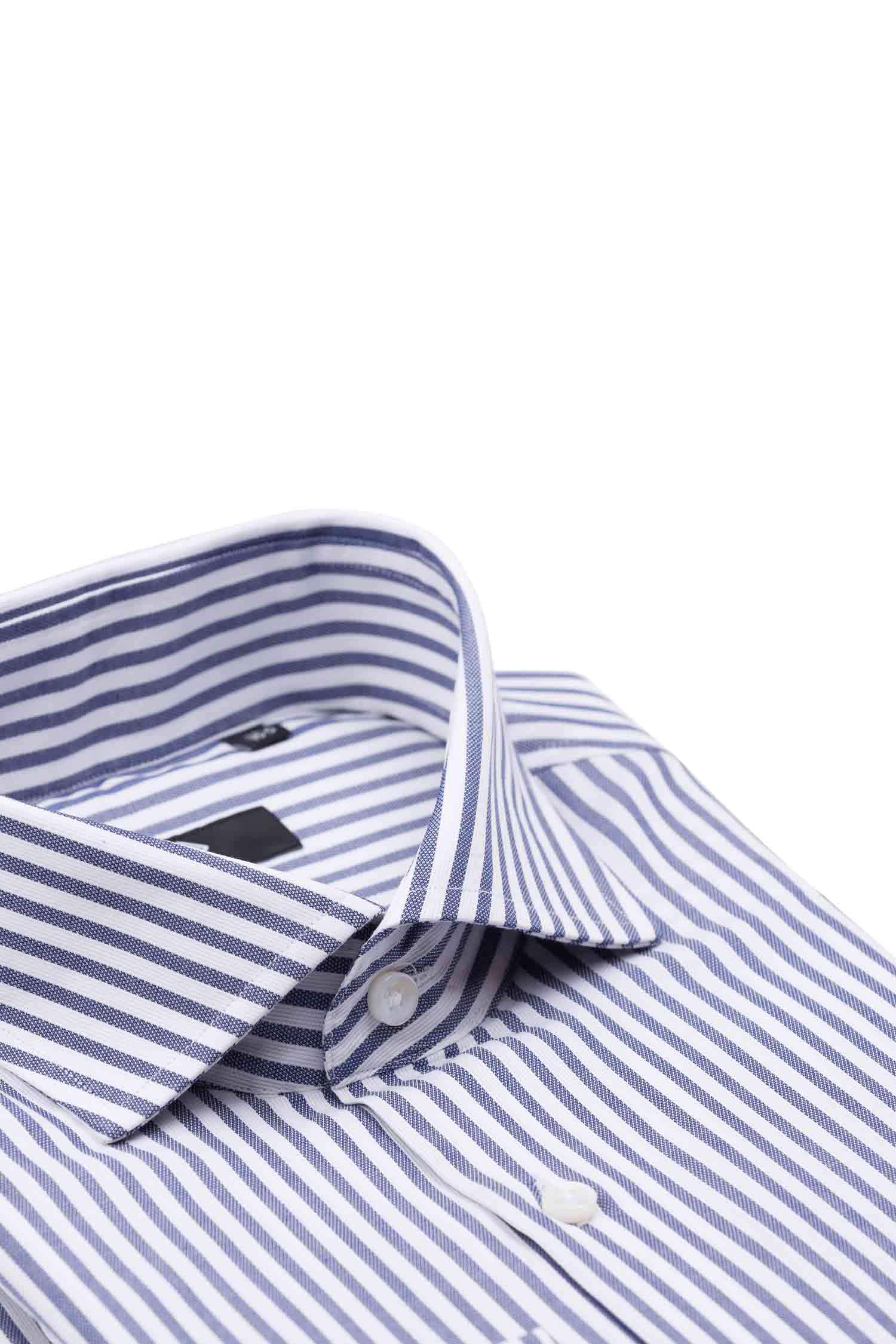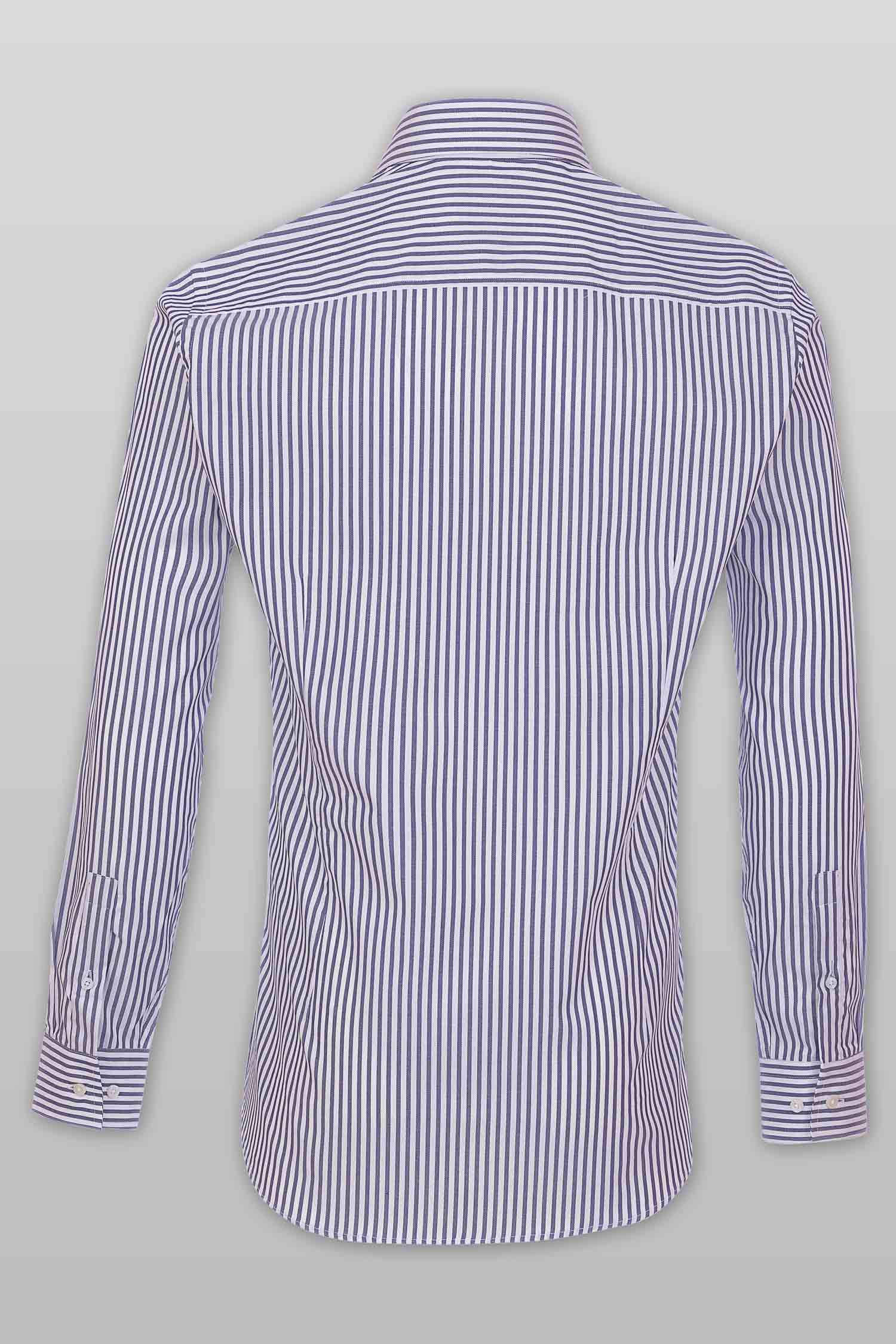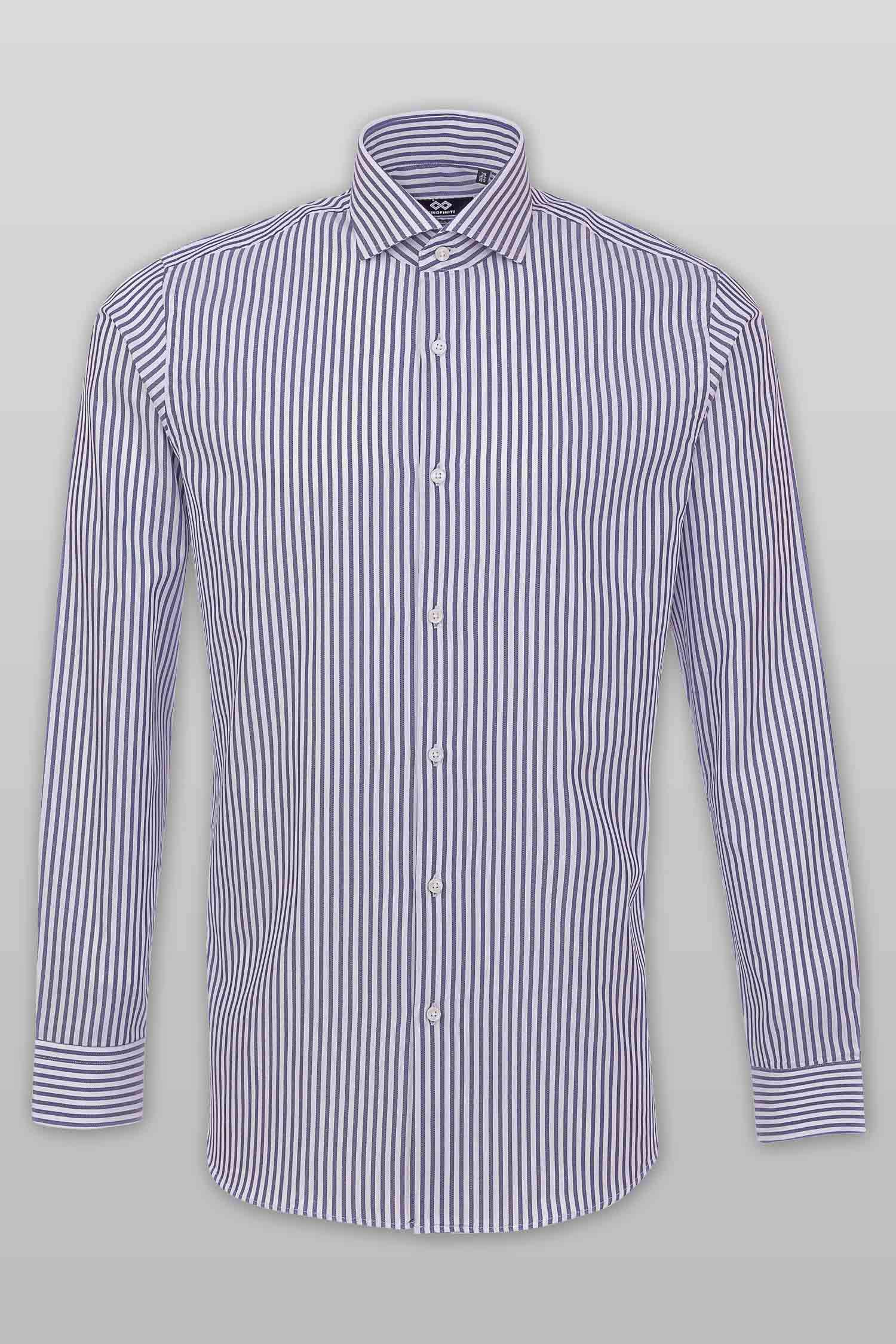 This “Romeo” dress shirt by Zingfiniti is specially crafted from premium Giza cotton for exceptional comfort and luxury feel. Decorated in a bold stripe pattern in blue and white, this shirt will make a sharp addition to your weekday wardrobe. This shirt strikes an elegant balance between luxury feel and incredible performance. The shirt fabric and style gives it a contemporary, downtown appeal when ironed up or you can wear it more relaxed with a pair of jeans. This slim fit shirt features a cutaway collar and barrel cuffs with adjustable buttons. We offer complimentary Zingfiniti Suit Cover and Sewing Kit with spare buttons & collar bones for extra care and protection. Experience the luxurious, soft and fine feel of these shirts.