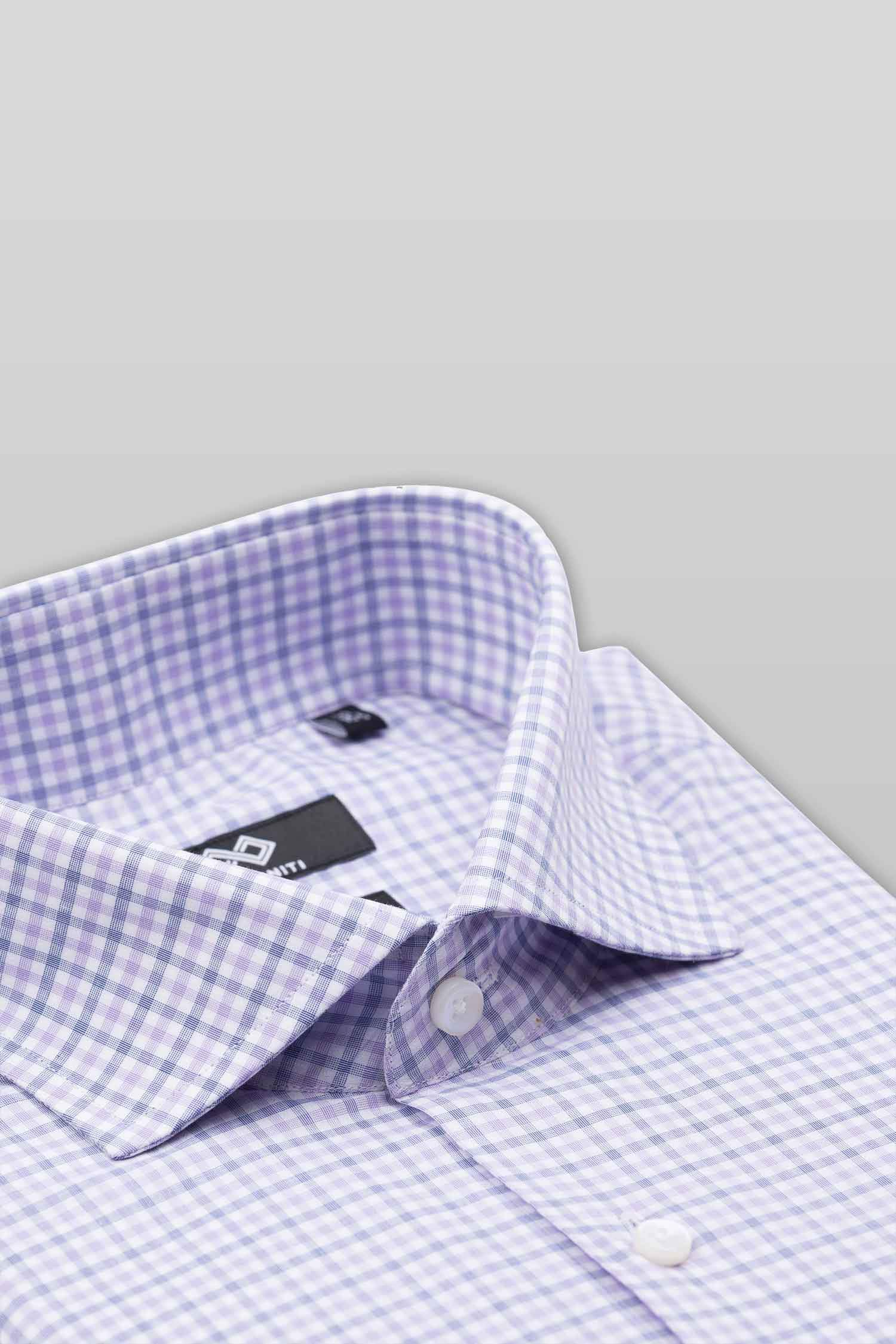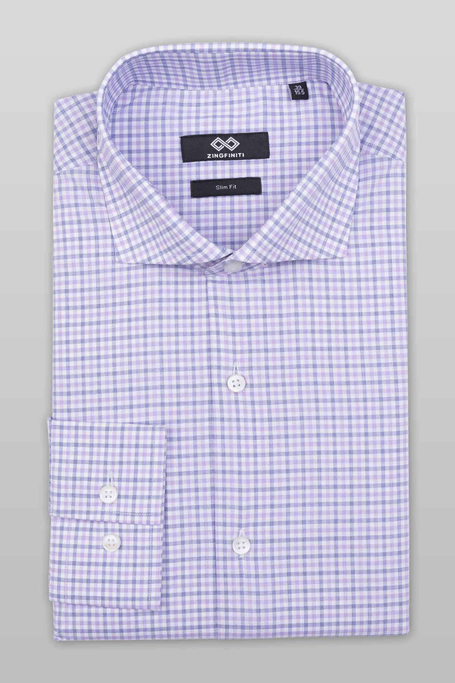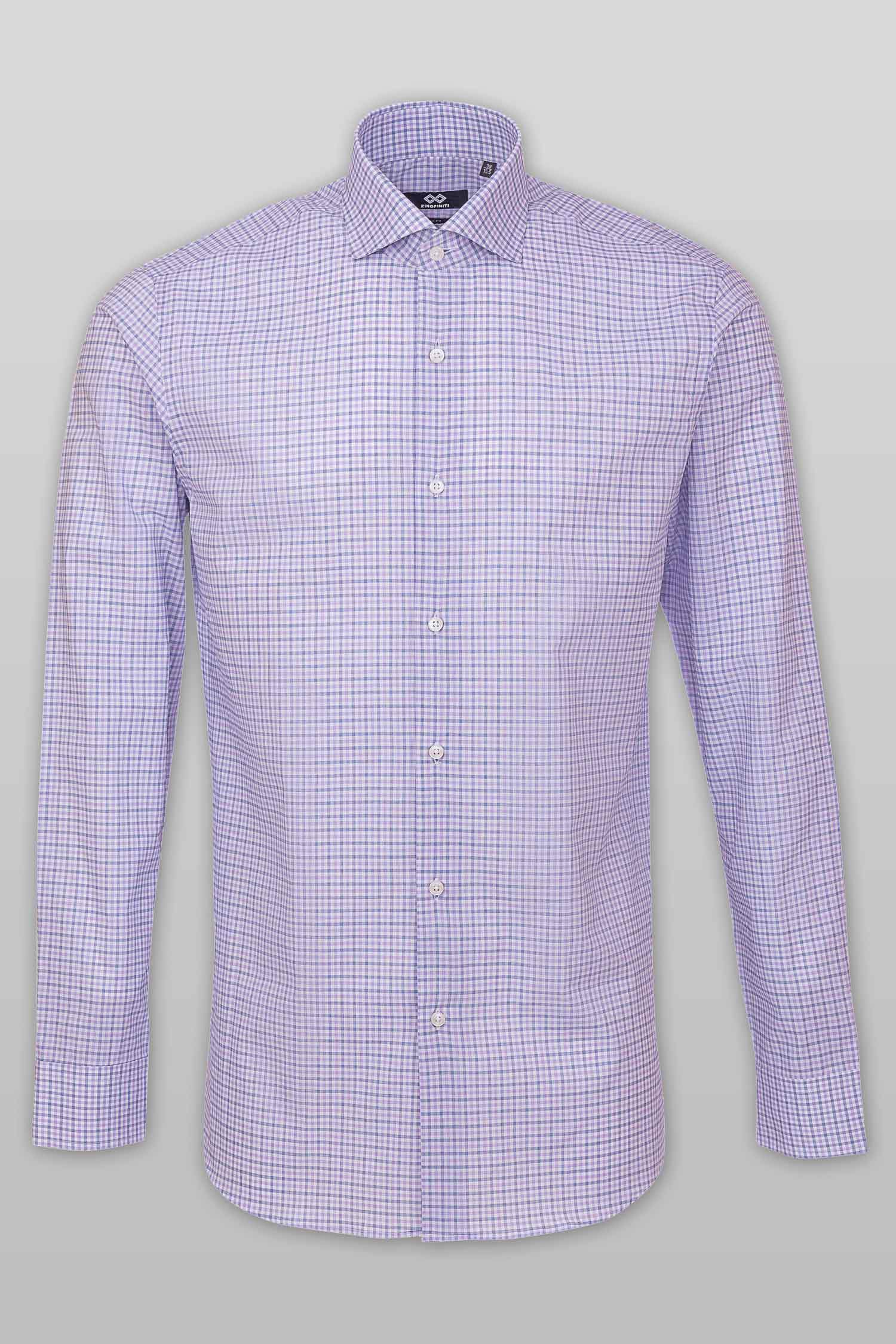 This “Zion” dress shirt by Zingfiniti is specially crafted from premium Giza cotton for exceptional comfort and luxury feel. Decorated in a check pattern in purple and white, this shirt will make a sharp addition to your weekday wardrobe. This shirt strikes an elegant balance between luxury feel and incredible performance. The shirt fabric and style gives it a contemporary, downtown appeal when ironed up or you can wear it more relaxed with a pair of jeans. This slim fit shirt features a cutaway collar and barrel cuffs with adjustable buttons. We offer complimentary Zingfiniti Suit Cover and Sewing Kit with spare buttons & collar bones for extra care and protection. Experience the luxurious, soft and fine feel of these shirts.
