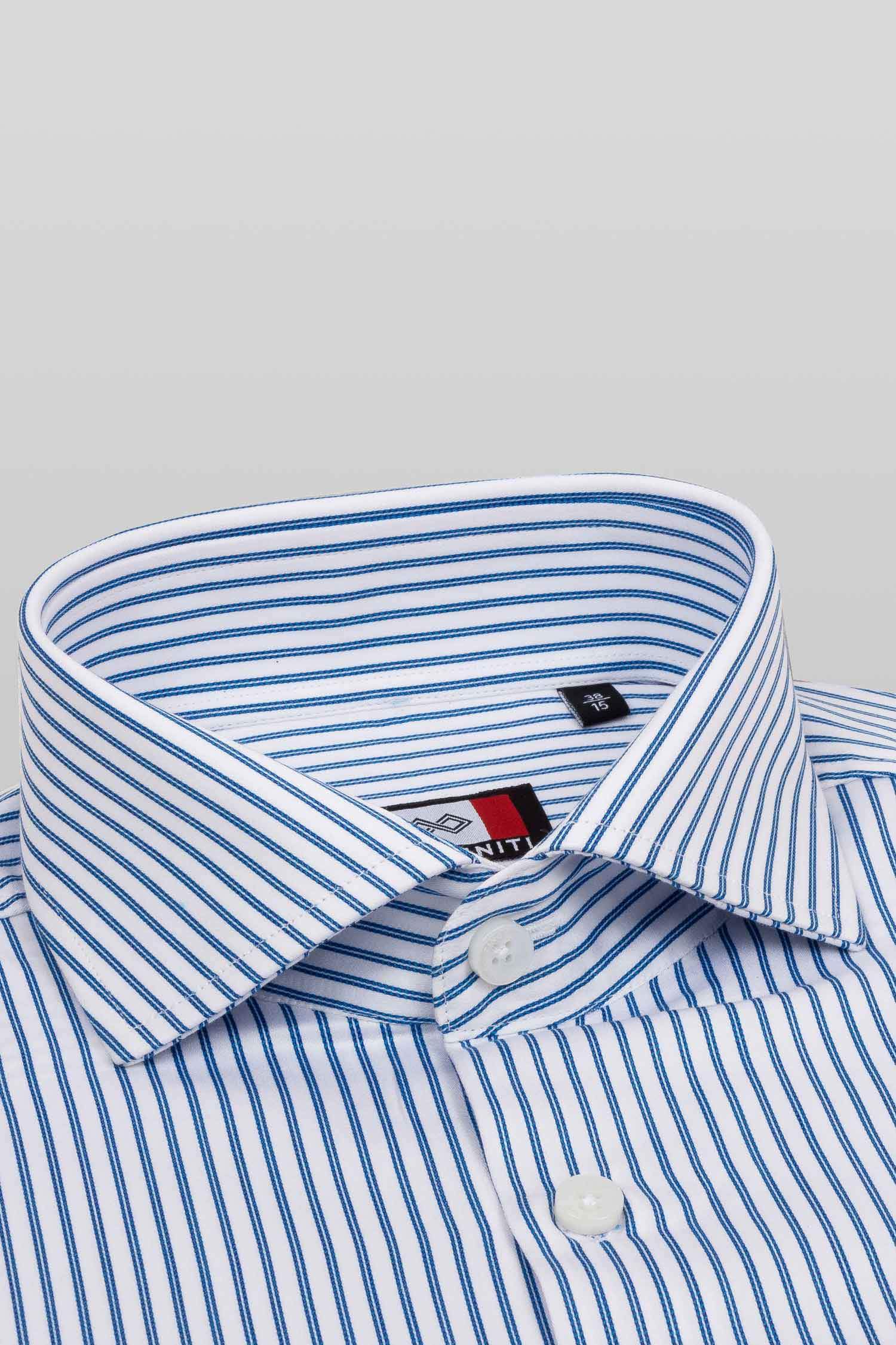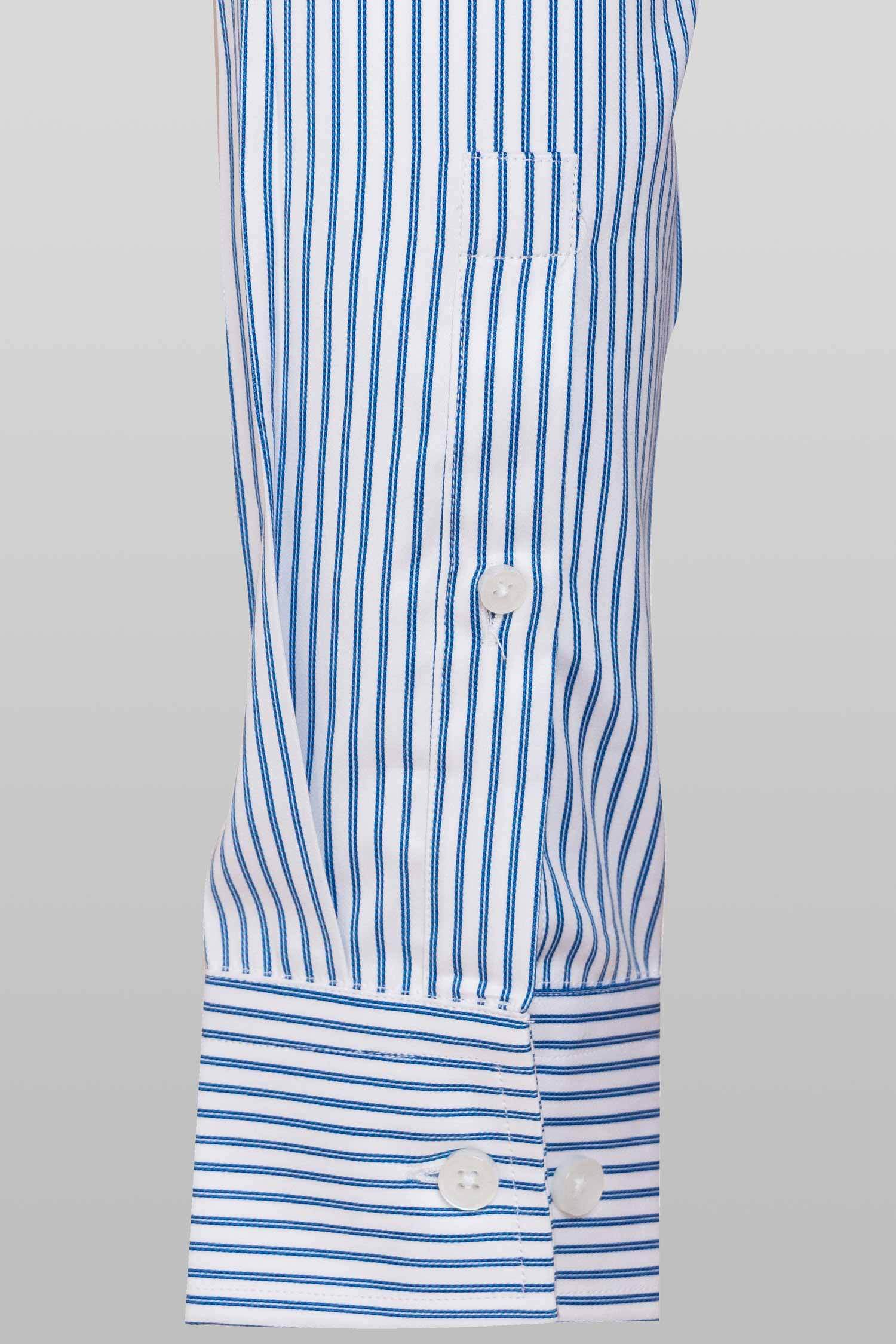 This "Elijah” dress shirt by Zingfiniti is specially crafted from premium Giza cotton for exceptional comfort and luxury feel. Decorated in pencil stripes in blue on white, this shirt will make a sharp addition to your weekday wardrobe. This shirt strikes an elegant balance between luxury feel and incredible performance. The shirt fabric and style gives it a contemporary, downtown appeal when ironed up or you can wear it more relaxed with a pair of jeans. This slim fit shirt features a cutaway collar and barrel cuffs with adjustable buttons. We offer complimentary Zingfiniti Sewing Kit with spare buttons & collar bones for extra care and protection. Experience the luxurious, soft and fine feel of these shirts.