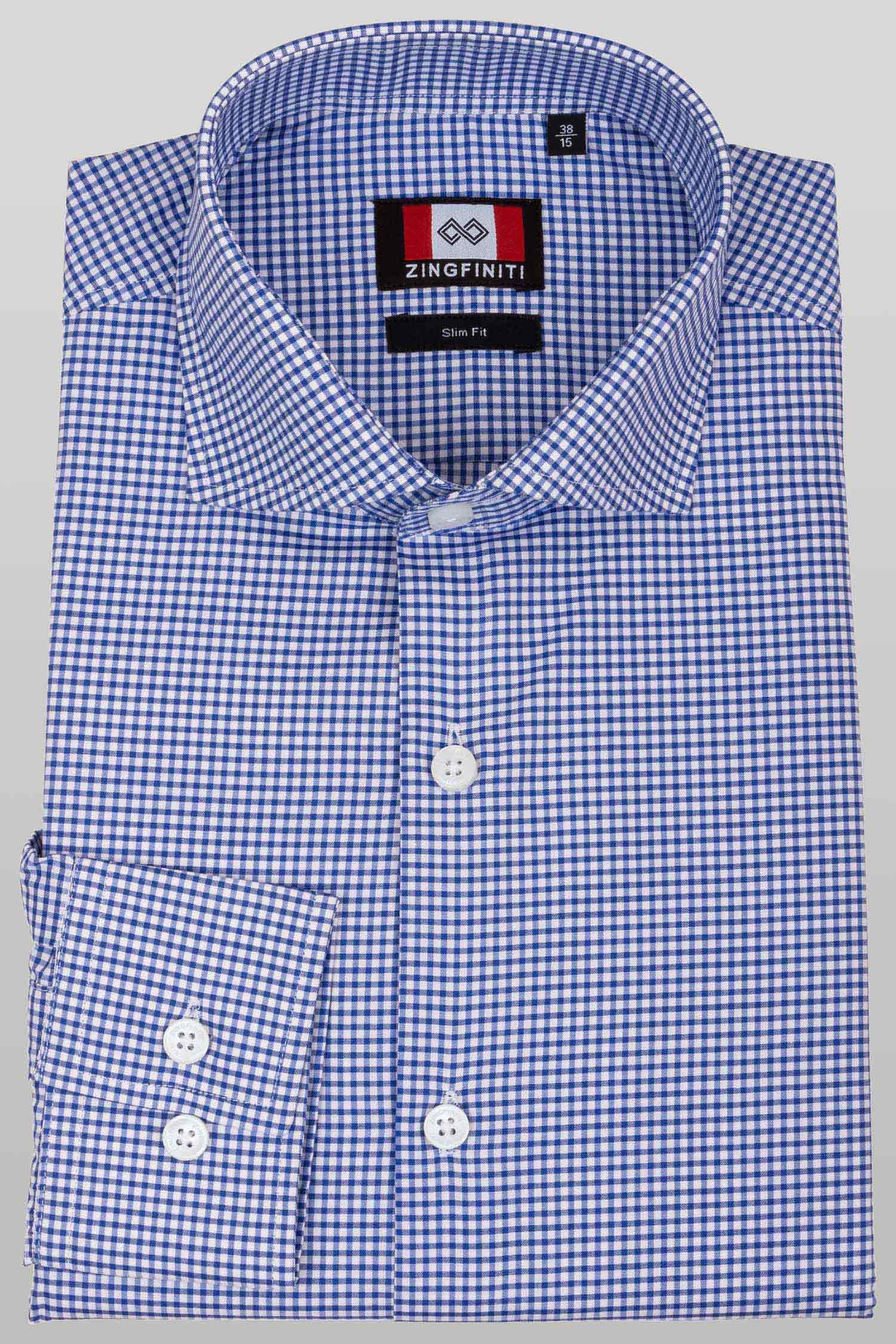 This "Giles” dress shirt by Zingfiniti is specially crafted from premium Giza cotton for exceptional comfort and luxury feel. Decorated in ultra fine check in blue & white, this shirt will make a sharp addition to your weekday wardrobe. This shirt strikes an elegant balance between luxury feel and incredible performance. The shirt fabric and style gives it a contemporary, downtown appeal when ironed up or you can wear it more relaxed with a pair of jeans. This slim fit shirt features a cutaway collar and barrel cuffs with adjustable buttons. We offer complimentary Zingfiniti Sewing Kit with spare buttons & collar bones for extra care and protection. Experience the luxurious, soft and fine feel of these shirts.