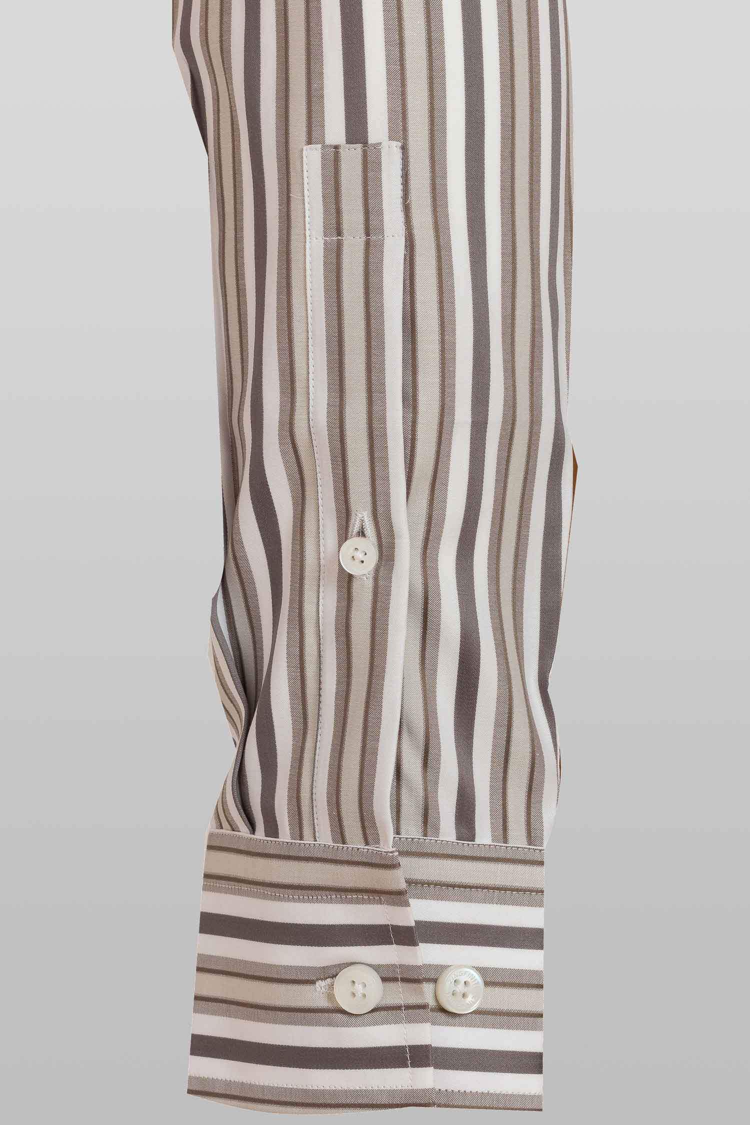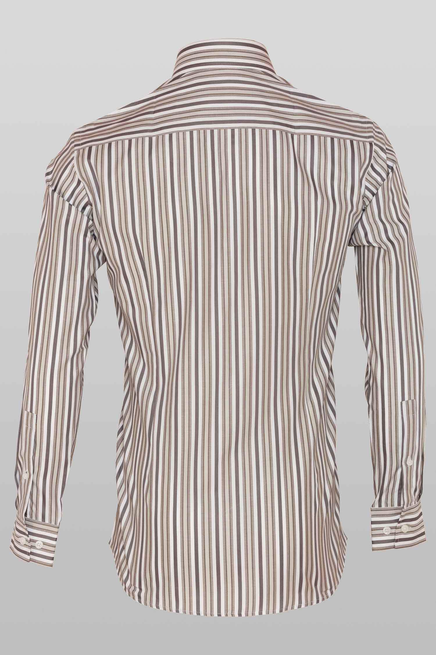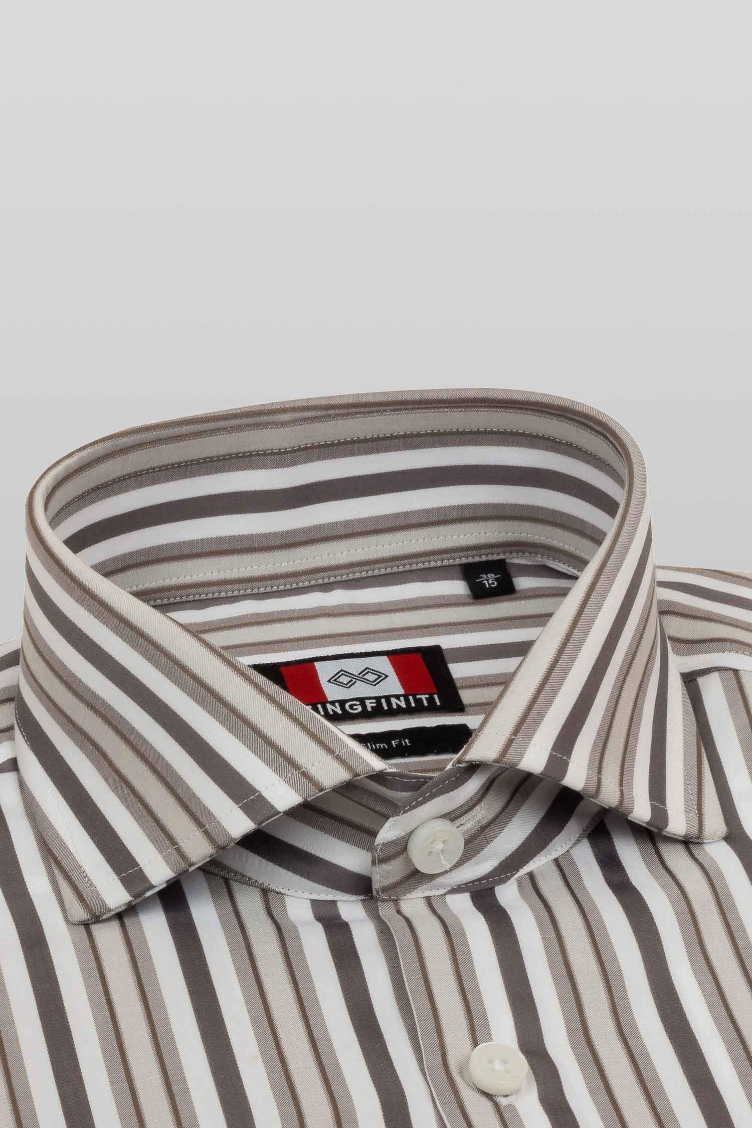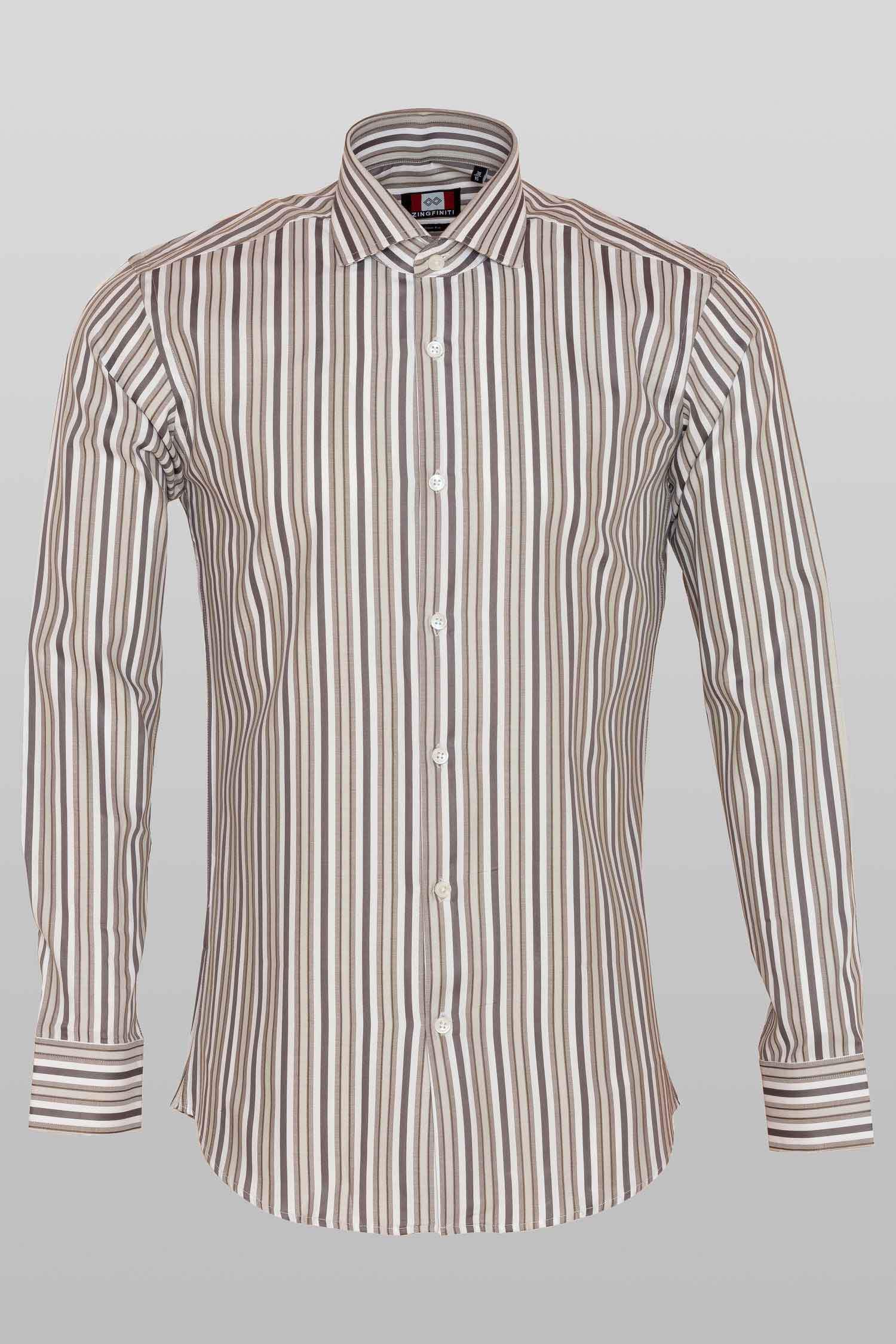 This "Jayden” dress shirt by Zingfiniti is specially crafted from premium Giza cotton for exceptional comfort and luxury feel. Decorated in pencil stripes in brown, grey & white, this shirt will make a sharp addition to your weekday wardrobe. This shirt strikes an elegant balance between luxury feel and incredible performance. The shirt fabric and style gives it a contemporary, downtown appeal when ironed up or you can wear it more relaxed with a pair of jeans. This slim fit shirt features a cutaway collar and barrel cuffs with adjustable buttons. We offer complimentary Zingfiniti Sewing Kit with spare buttons & collar bones for extra care and protection. Experience the luxurious, soft and fine feel of these shirts.
