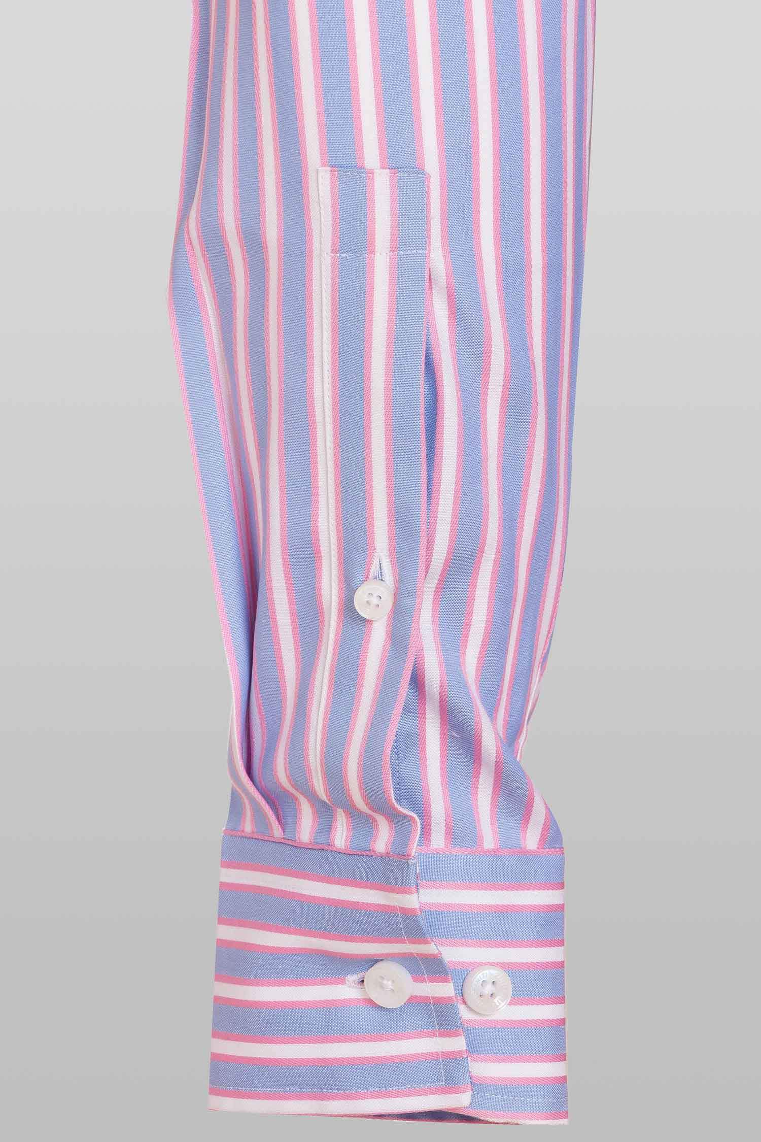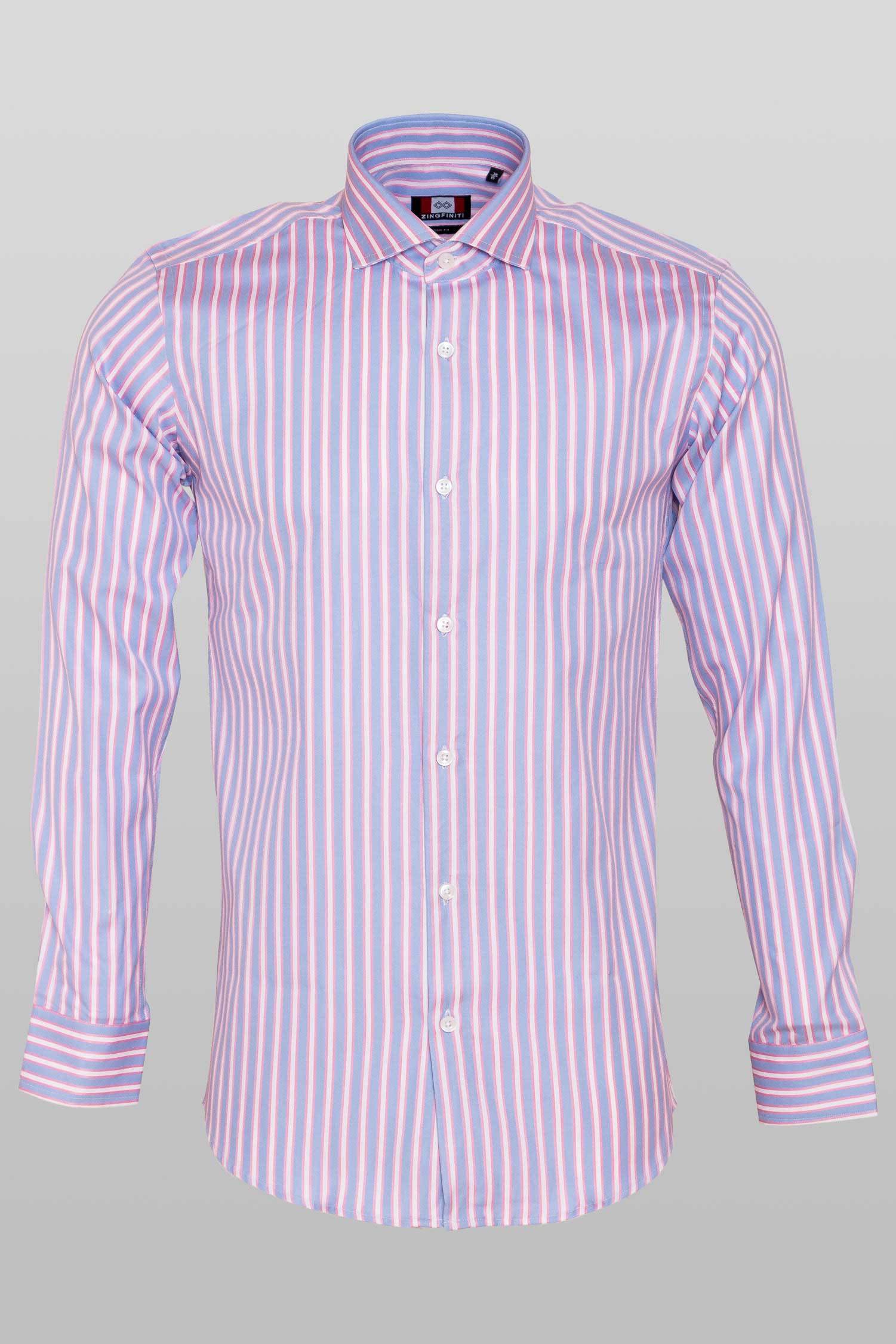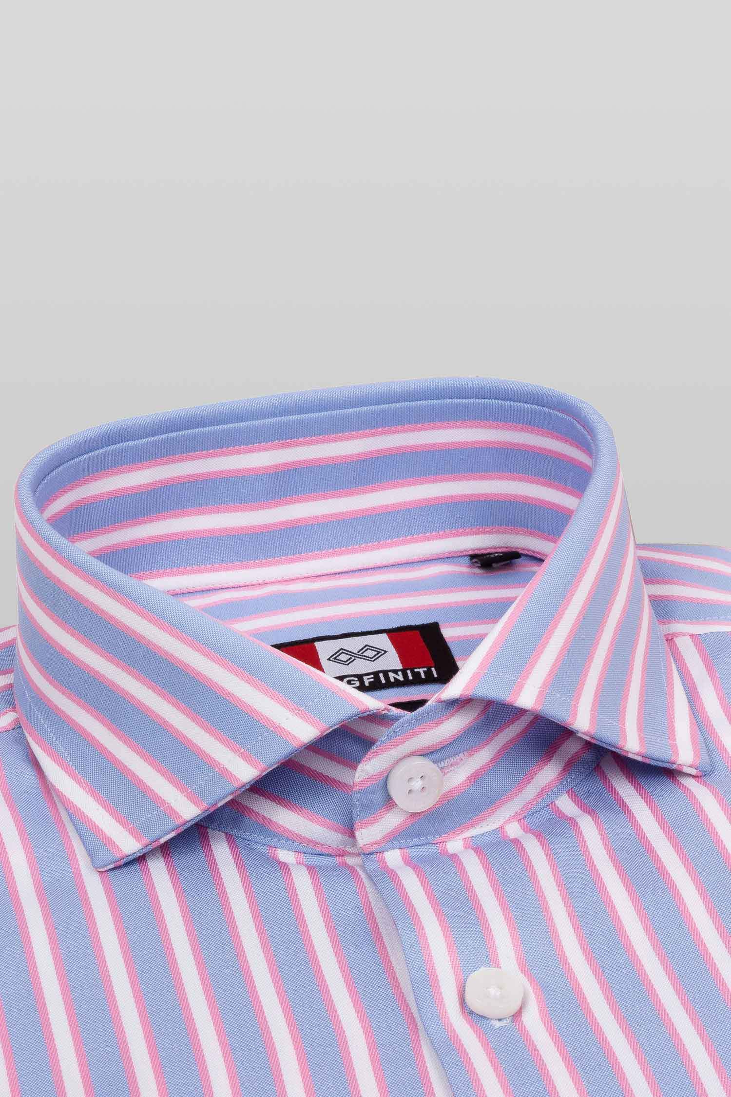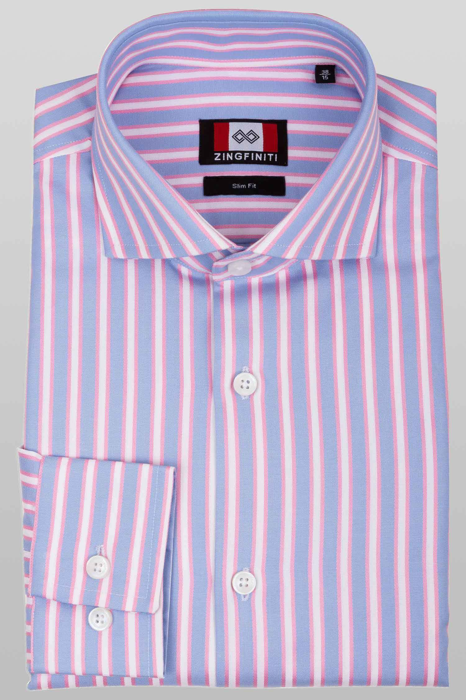 This "Barun” dress shirt by Zingfiniti is specially crafted from premium Giza cotton for exceptional comfort and luxury feel. Decorated in shadow stripes in pink & blue, this shirt will make a sharp addition to your weekday wardrobe. This shirt strikes an elegant balance between luxury feel and incredible performance. The shirt fabric and style gives it a contemporary, downtown appeal when ironed up or you can wear it more relaxed with a pair of jeans. This slim fit shirt features a cutaway collar and barrel cuffs with adjustable buttons. We offer complimentary Zingfiniti Sewing Kit with spare buttons & collar bones for extra care and protection. Experience the luxurious, soft and fine feel of these shirts.