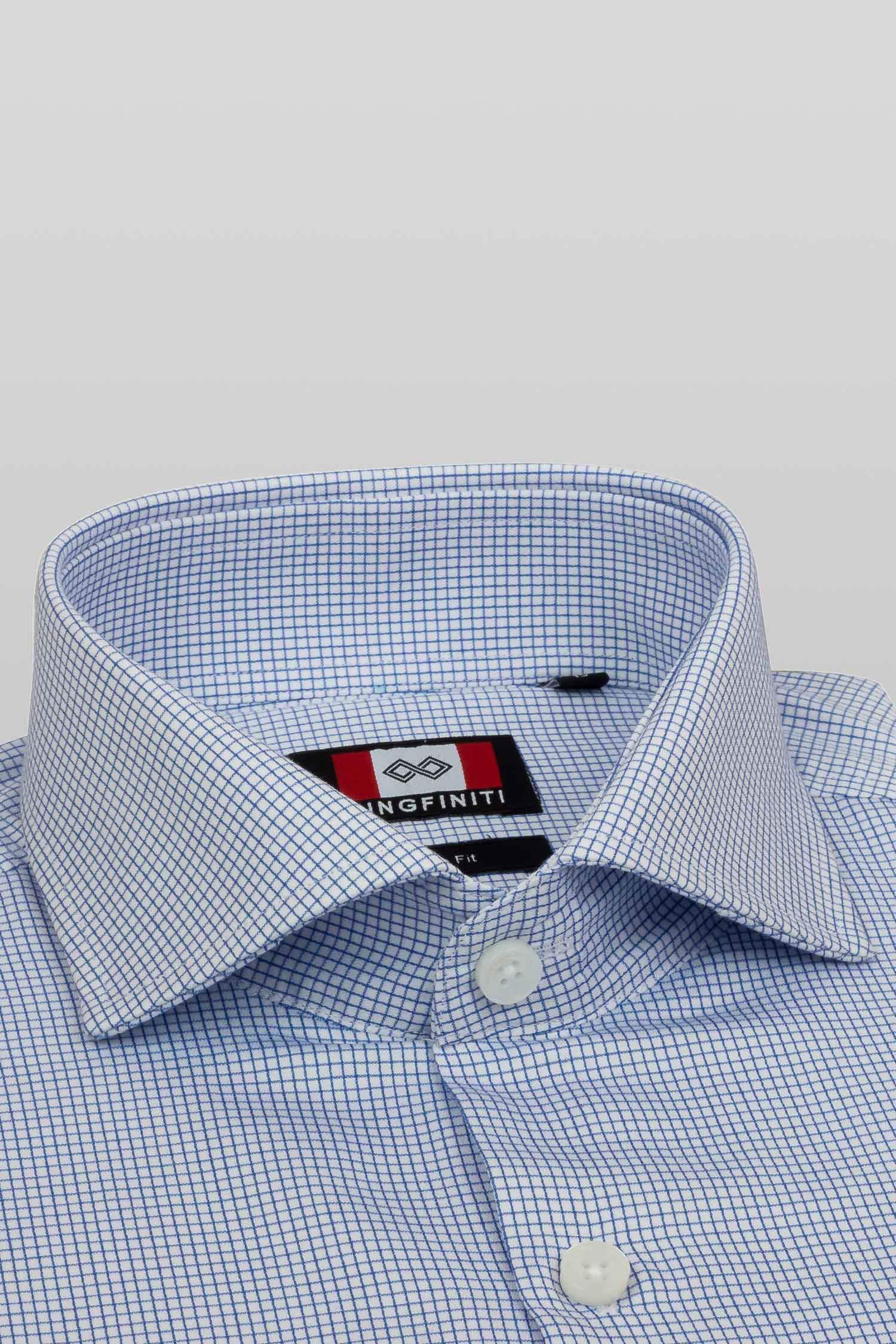 This "Callum” dress shirt by Zingfiniti is specially crafted from premium Giza cotton for exceptional comfort and luxury feel. Decorated in ultrafine check in blue & white, this shirt will make a sharp addition to your weekday wardrobe. This shirt strikes an elegant balance between luxury feel and incredible performance. The shirt fabric and style gives it a contemporary, downtown appeal when ironed up or you can wear it more relaxed with a pair of jeans. This slim fit shirt features a cutaway collar and barrel cuffs with adjustable buttons. We offer complimentary Zingfiniti Sewing Kit with spare buttons & collar bones for extra care and protection. Experience the luxurious, soft and fine feel of these shirts.