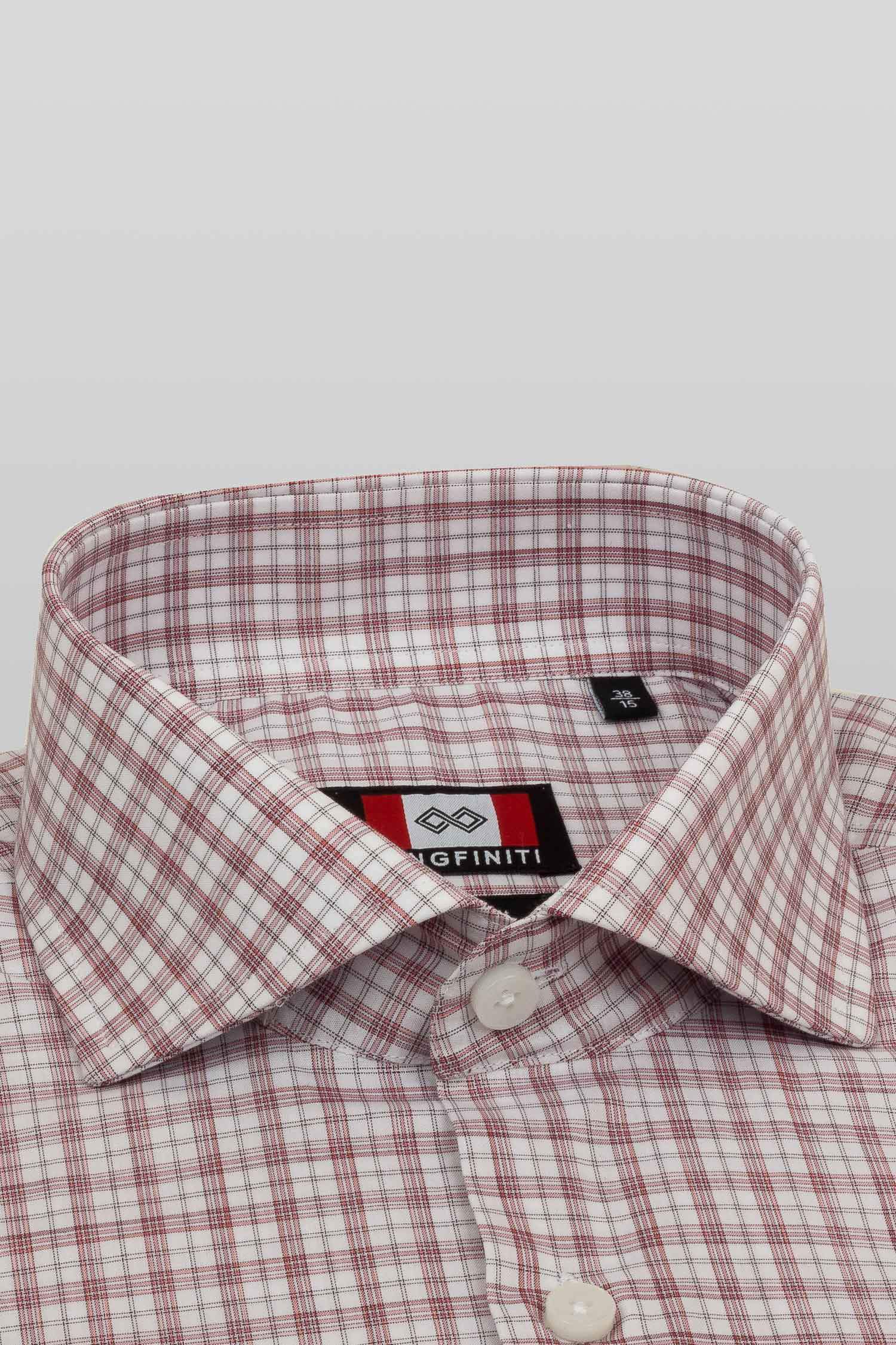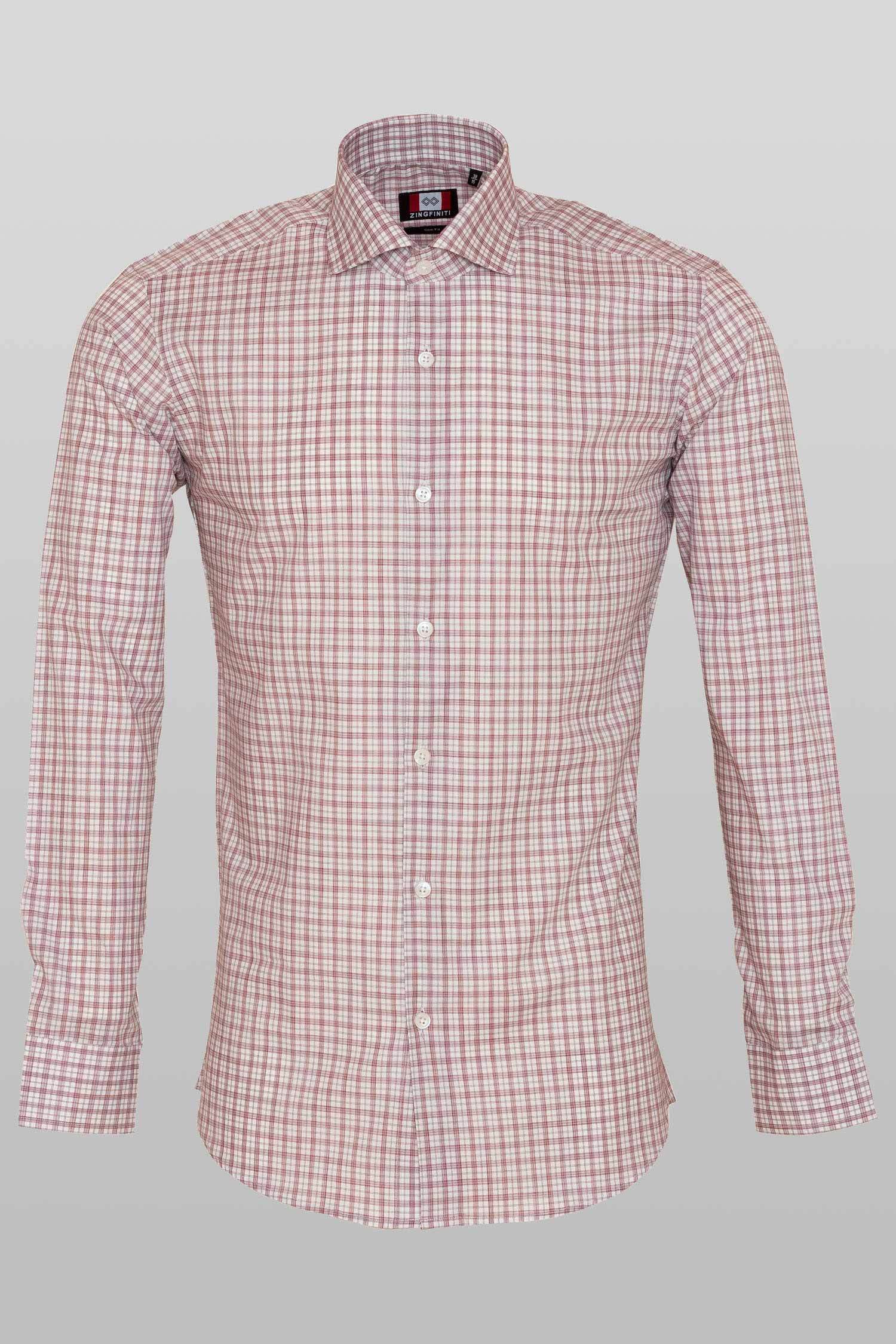 This "Jude” dress shirt by Zingfiniti is specially crafted from premium Giza cotton for exceptional comfort and luxury feel. Decorated in fine madras check pattern in white & maroon, this shirt will make a sharp addition to your weekday wardrobe. This shirt strikes an elegant balance between luxury feel and incredible performance. The shirt fabric and style gives it a contemporary, downtown appeal when ironed up or you can wear it more relaxed with a pair of jeans. This slim fit shirt features a cutaway collar and barrel cuffs with adjustable buttons. We offer complimentary Zingfiniti Sewing Kit with spare buttons & collar bones for extra care and protection. Experience the luxurious, soft and fine feel of these shirts.