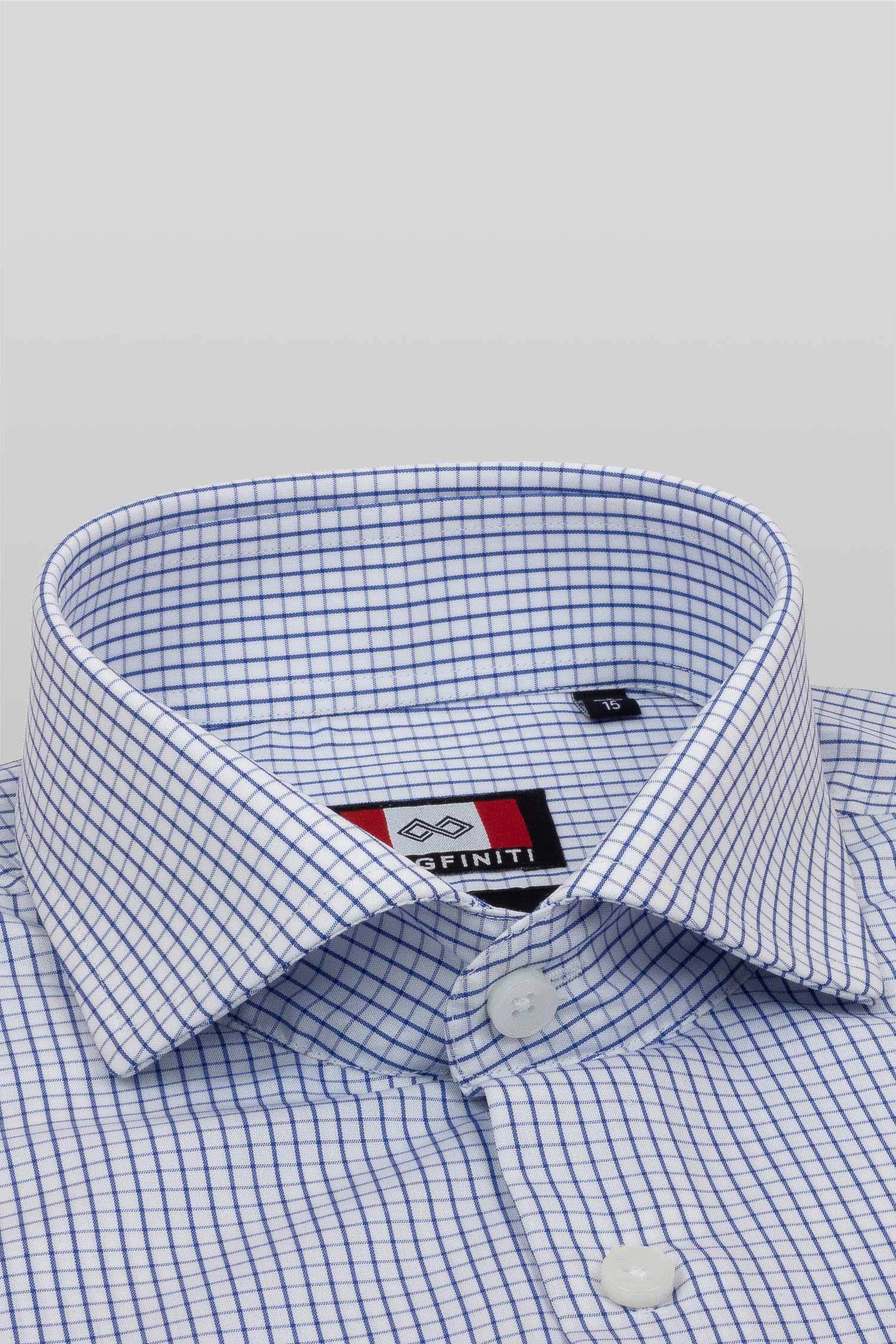 This "Nicolas” dress shirt by Zingfiniti is specially crafted from premium Giza cotton for exceptional comfort and luxury feel. Decorated in fine check in blue & white, this shirt will make a sharp addition to your weekday wardrobe. This shirt strikes an elegant balance between luxury feel and incredible performance. The shirt fabric and style gives it a contemporary, downtown appeal when ironed up or you can wear it more relaxed with a pair of jeans. This slim fit shirt features a cutaway collar and barrel cuffs with adjustable buttons. We offer complimentary Zingfiniti Sewing Kit with spare buttons & collar bones for extra care and protection. Experience the luxurious, soft and fine feel of these shirts.