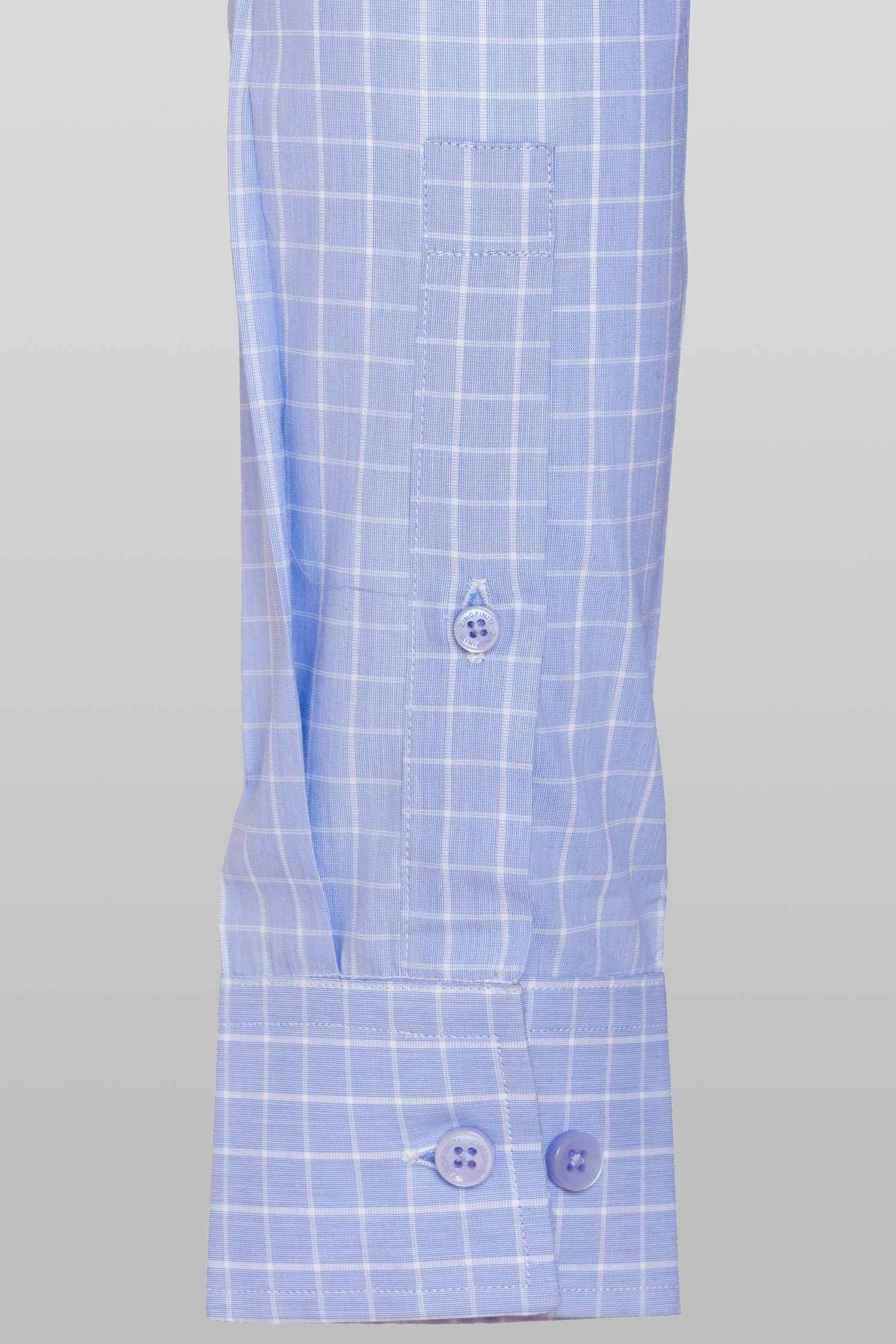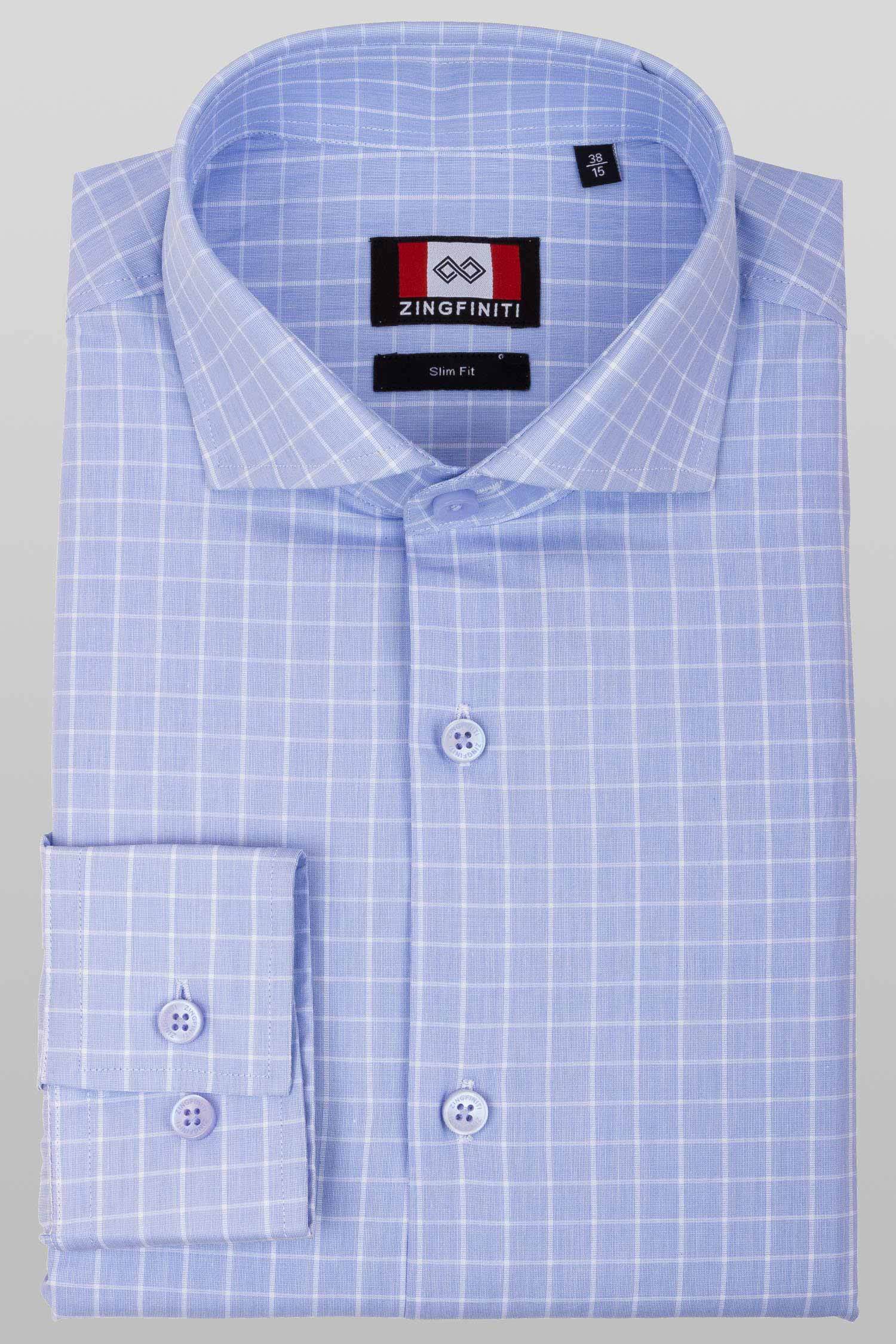 This "Piers” dress shirt by Zingfiniti is specially crafted from premium Giza cotton for exceptional comfort and luxury feel. Decorated in box checks in white on blue, this shirt will make a sharp addition to your weekday wardrobe. This shirt strikes an elegant balance between luxury feel and incredible performance. The shirt fabric and style gives it a contemporary, downtown appeal when ironed up or you can wear it more relaxed with a pair of jeans. This slim fit shirt features a cutaway collar and barrel cuffs with adjustable buttons. We offer complimentary Zingfiniti Sewing Kit with spare buttons & collar bones for extra care and protection. Experience the luxurious, soft and fine feel of these shirts.
