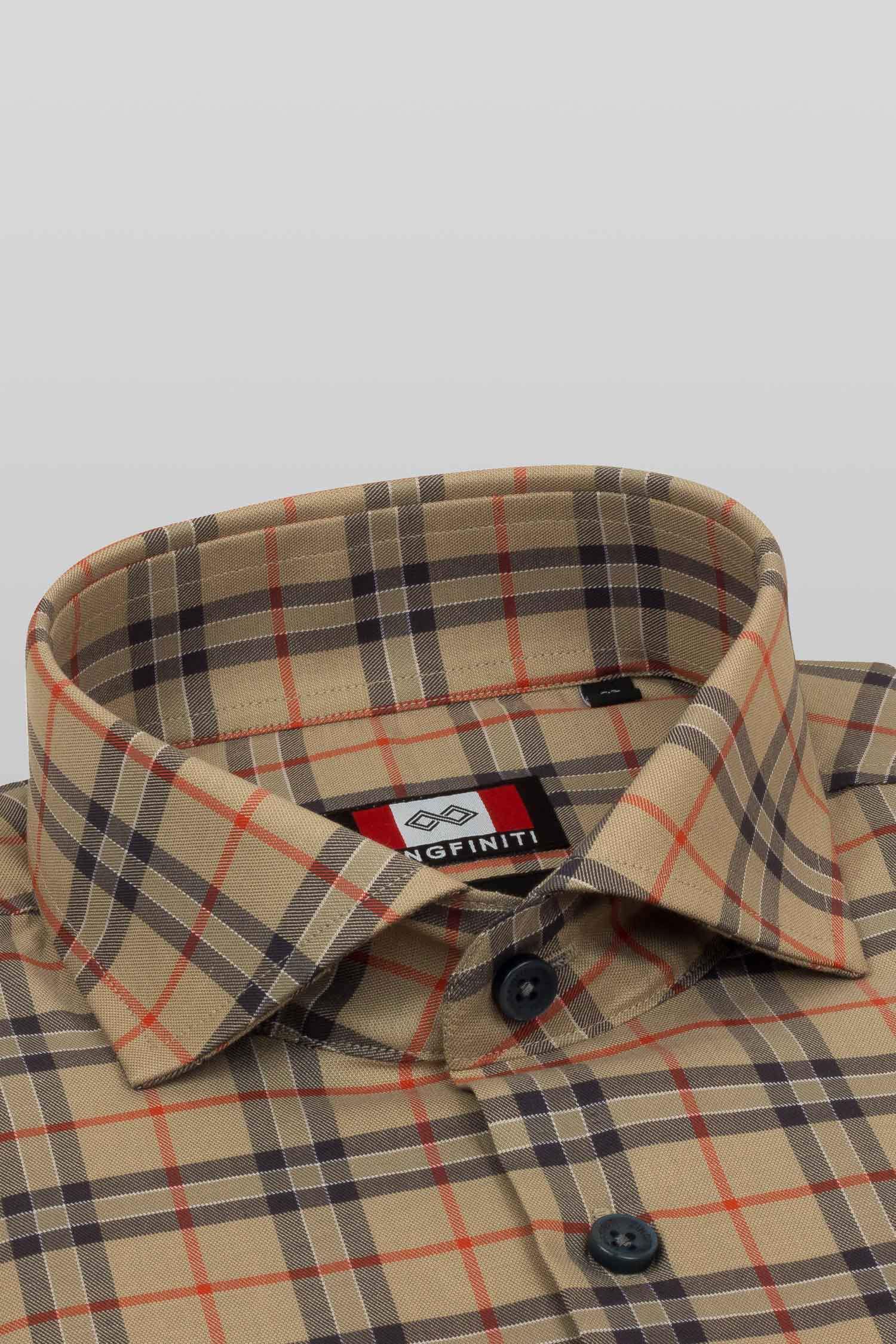 This "Rupert” dress shirt by Zingfiniti is specially crafted from premium Giza cotton for exceptional comfort and luxury feel. Decorated in plaid check in brown, grey & red, this shirt will make a sharp addition to your weekday wardrobe. This shirt strikes an elegant balance between luxury feel and incredible performance. The shirt fabric and style gives it a contemporary, downtown appeal when ironed up or you can wear it more relaxed with a pair of jeans. This slim fit shirt features a cutaway collar and barrel cuffs with adjustable buttons. We offer complimentary Zingfiniti Sewing Kit with spare buttons & collar bones for extra care and protection. Experience the luxurious, soft and fine feel of these shirts.