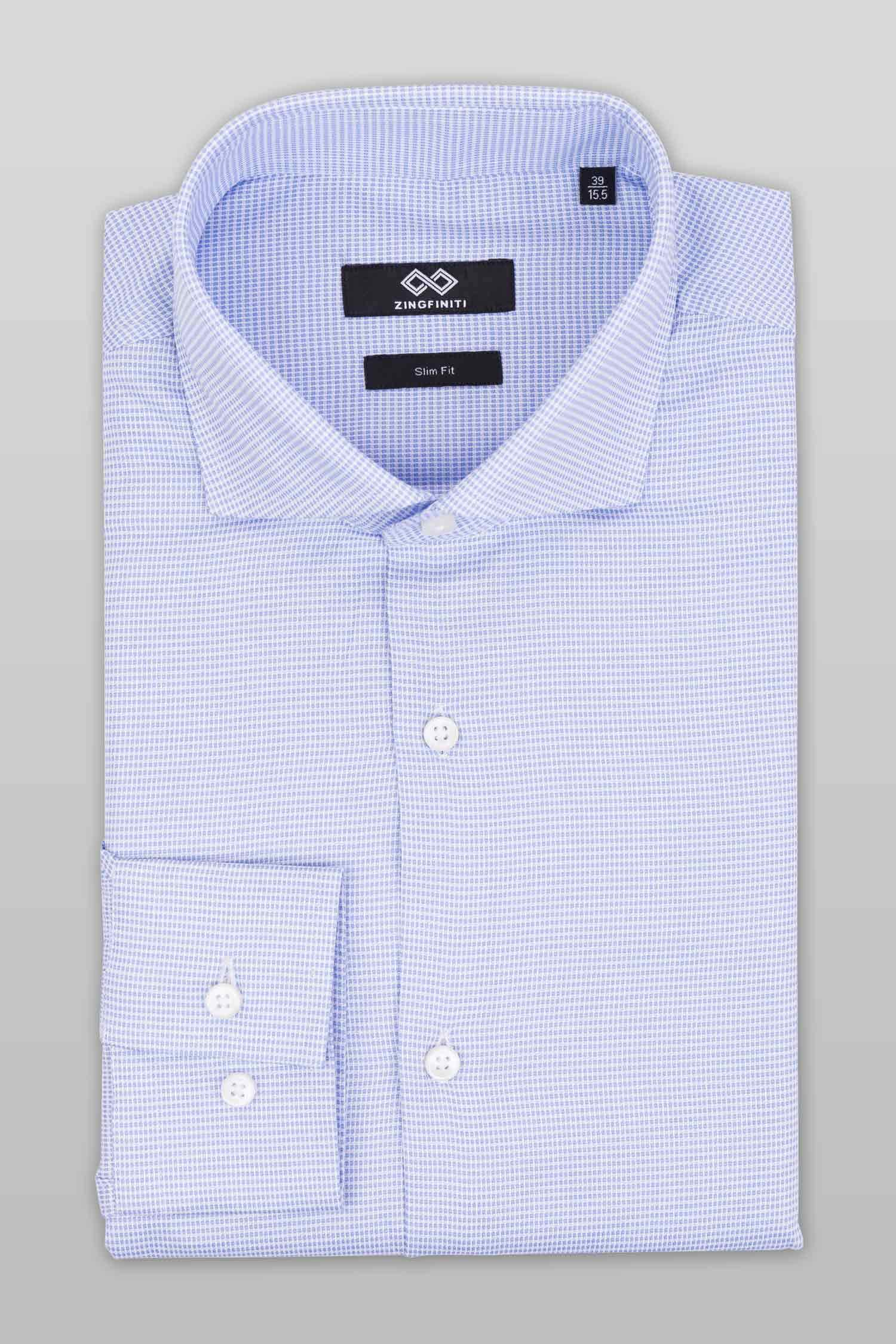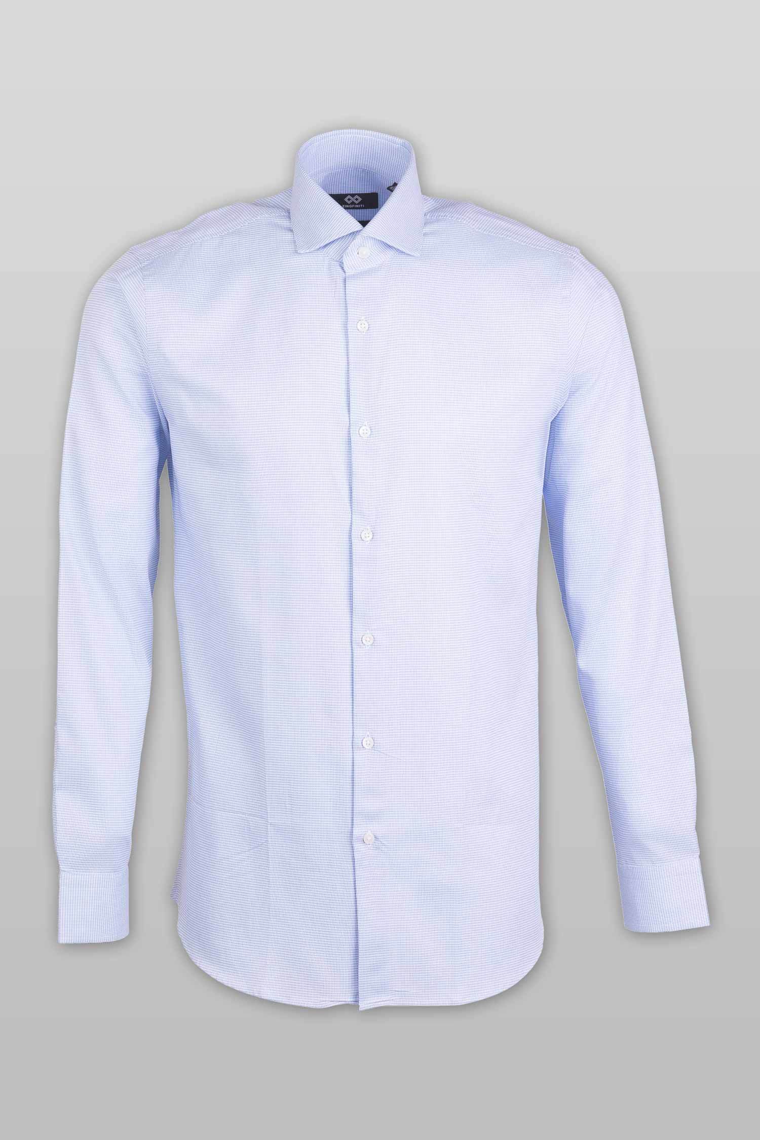 This “Brendan” dress shirt by Zingfiniti is specially crafted from premium Giza cotton for exceptional comfort and luxury feel. Decorated in a fine textured pattern in blue and white, this shirt will make a sharp addition to your weekday wardrobe. This shirt strikes an elegant balance between luxury feel and incredible performance. The shirt fabric and style gives it a contemporary, downtown appeal when ironed up or you can wear it more relaxed with a pair of jeans. This slim fit shirt features a cutaway collar and barrel cuffs with adjustable buttons. We offer complimentary Zingfiniti Suit Cover and Sewing Kit with spare buttons & collar bones for extra care and protection. Experience the luxurious, soft and fine feel of these shirts.