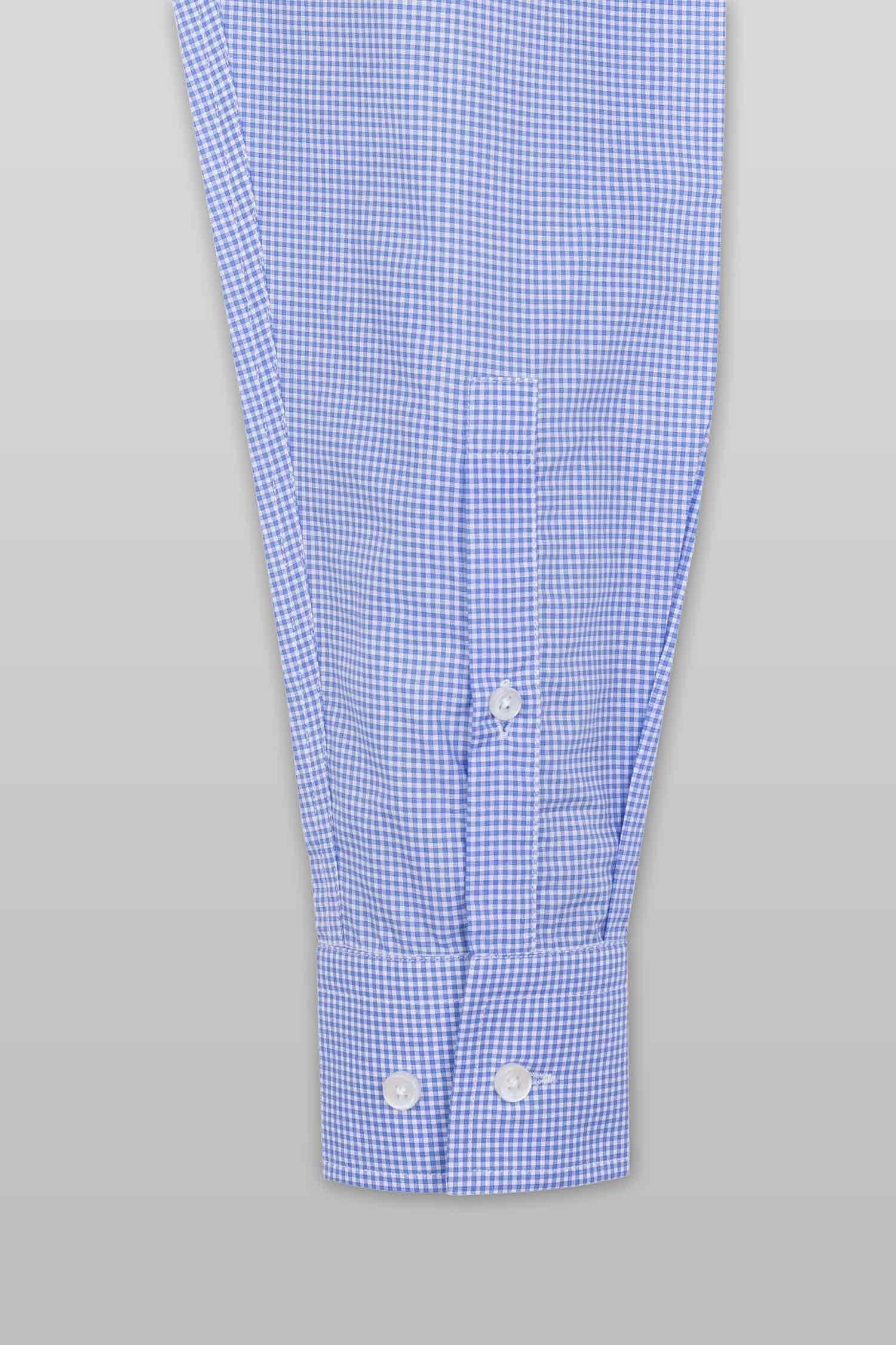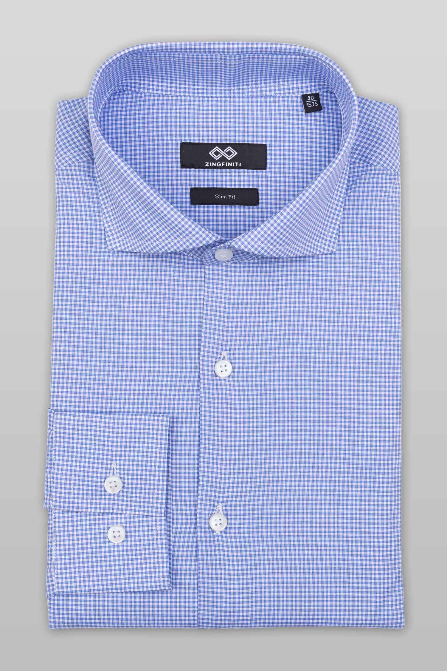 This “Malcom” dress shirt by Zingfiniti is specially crafted from premium Giza cotton for exceptional comfort and luxury feel. Decorated in a fine check pattern in blue and white, this shirt will make a sharp addition to your weekday wardrobe. This shirt strikes an elegant balance between luxury feel and incredible performance. The shirt fabric and style gives it a contemporary, downtown appeal when ironed up or you can wear it more relaxed with a pair of jeans. This slim fit shirt features a cutaway collar and barrel cuffs with adjustable buttons. We offer complimentary Zingfiniti Suit Cover and Sewing Kit with spare buttons & collar bones for extra care and protection. Experience the luxurious, soft and fine feel of these shirts.