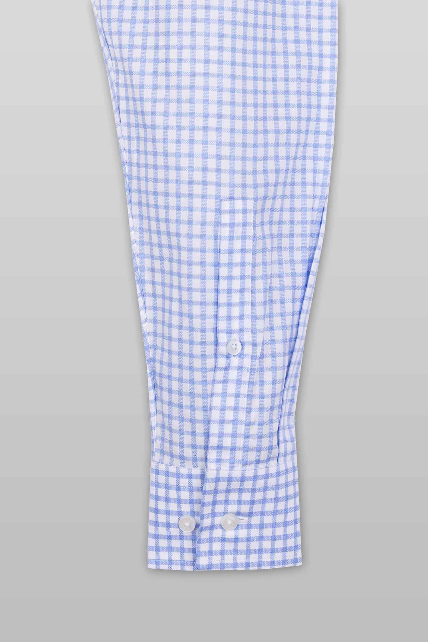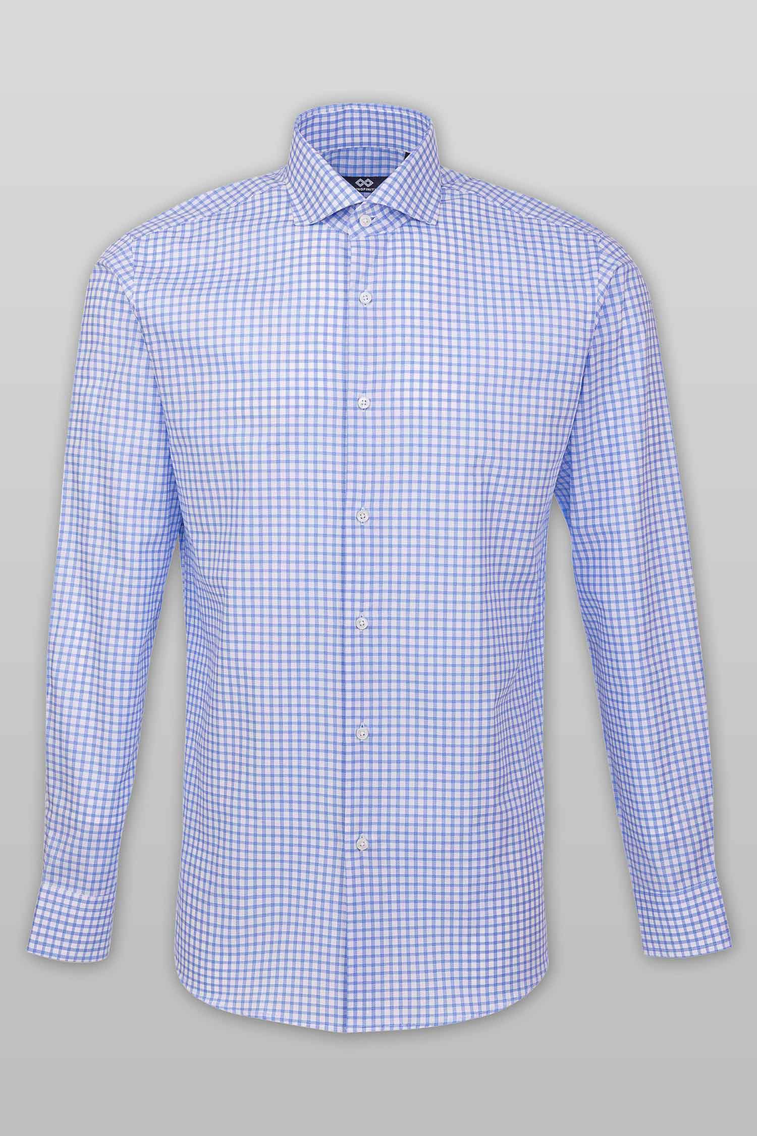 This “Ari” dress shirt by Zingfiniti is specially crafted from premium Giza cotton for exceptional comfort and luxury feel. Decorated in a check pattern in blue and white, this shirt will make a sharp addition to your weekday wardrobe. This shirt strikes an elegant balance between luxury feel and incredible performance. The shirt fabric and style gives it a contemporary, downtown appeal when ironed up or you can wear it more relaxed with a pair of jeans. This slim fit shirt features a cutaway collar and barrel cuffs with adjustable buttons. We offer complimentary Zingfiniti Suit Cover and Sewing Kit with spare buttons & collar bones for extra care and protection. Experience the luxurious, soft and fine feel of these shirts.
