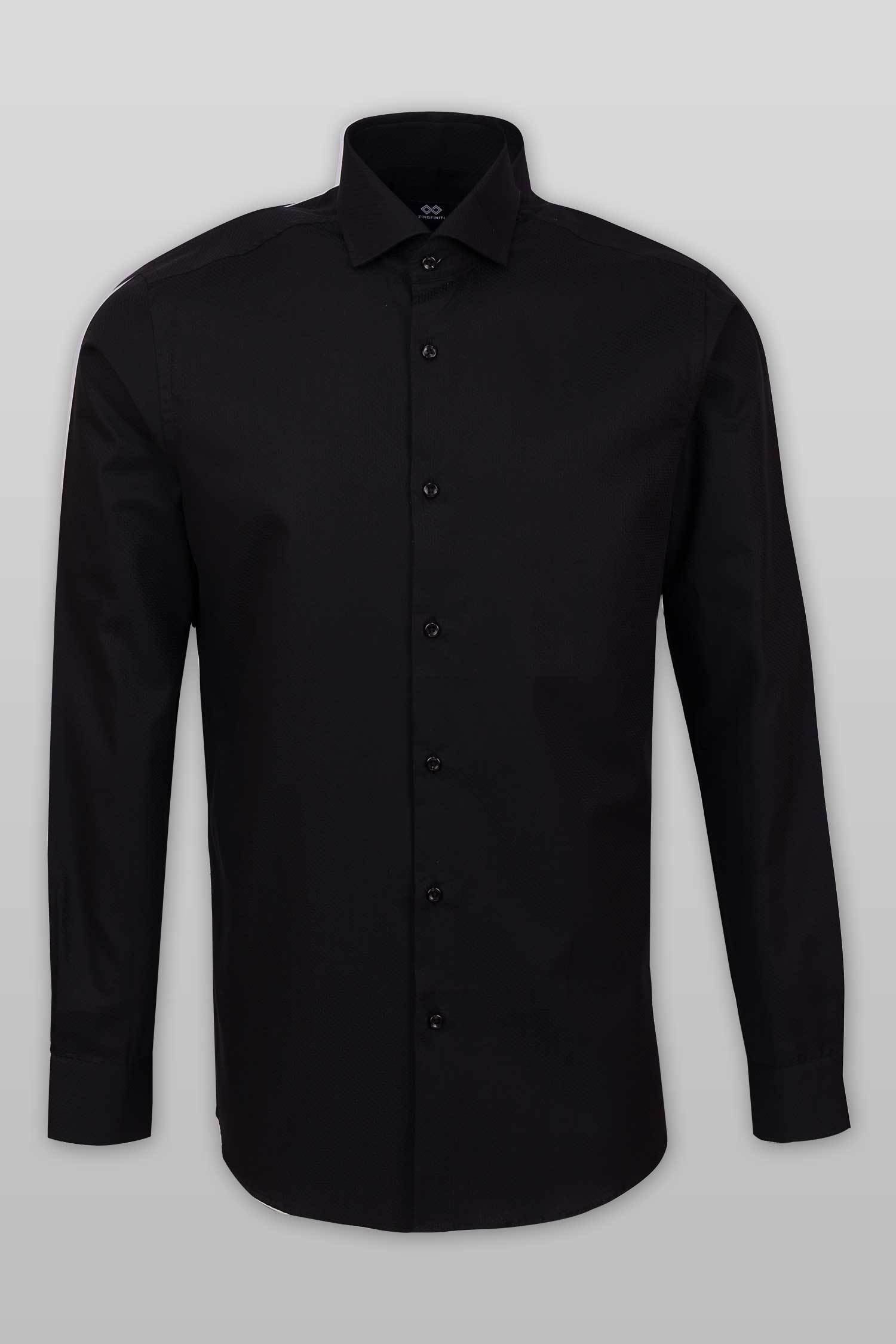This “Jagger” dress shirt by Zingfiniti is specially crafted from premium Giza cotton for exceptional comfort and luxury feel. Decorated in a textured black pattern, this shirt will make a sharp addition to your weekday wardrobe. This shirt strikes an elegant balance between luxury feel and incredible performance. The shirt fabric and style gives it a contemporary, downtown appeal when ironed up or you can wear it more relaxed with a pair of jeans. This slim fit shirt features a cutaway collar and barrel cuffs with adjustable buttons. We offer complimentary Zingfiniti Suit Cover and Sewing Kit with spare buttons & collar bones for extra care and protection. Experience the luxurious, soft and fine feel of these shirts.