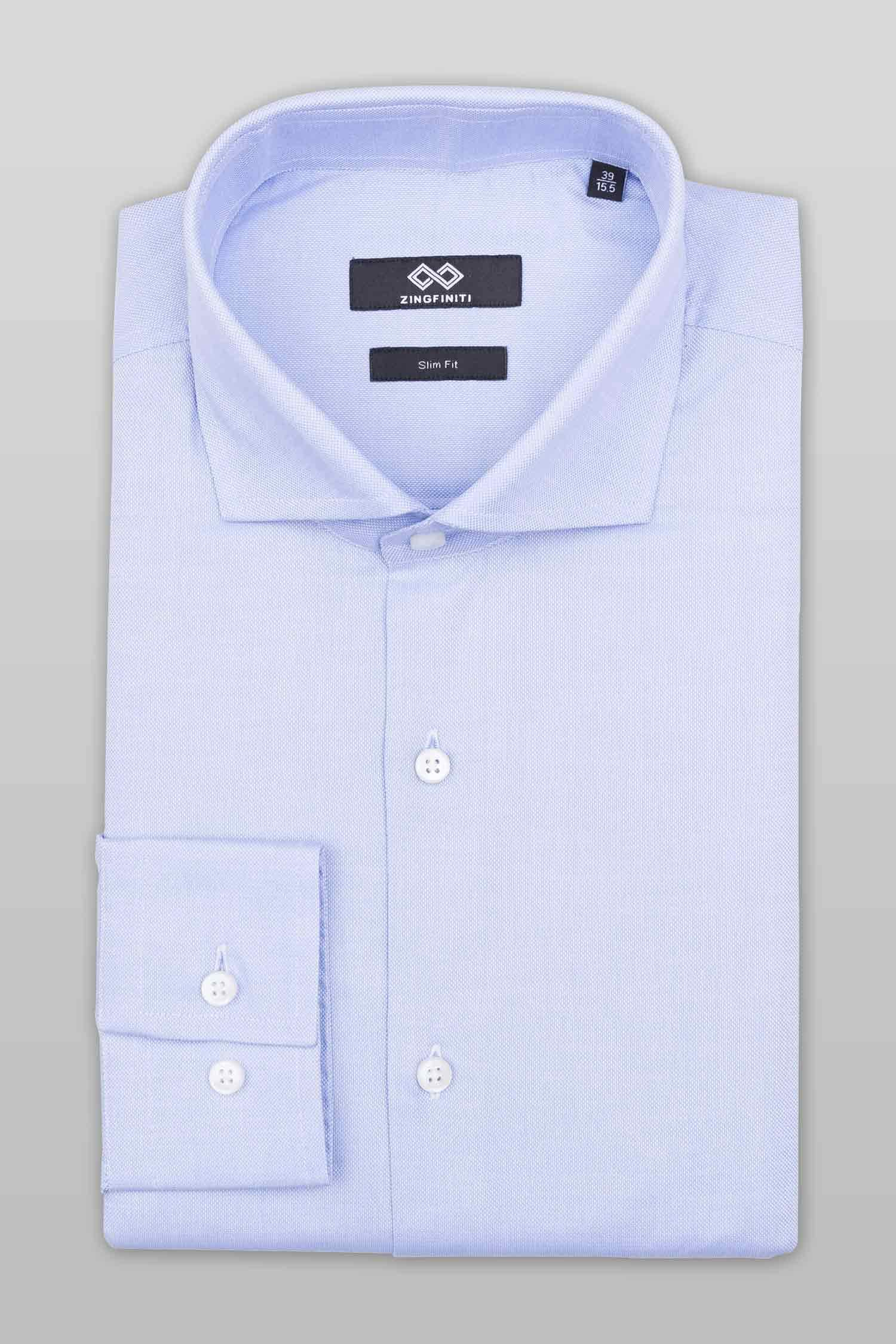 This “Apollo” dress shirt by Zingfiniti is specially crafted from premium Giza cotton for exceptional comfort and luxury feel. Decorated in a fine pattern in blue and white, this shirt will make a sharp addition to your weekday wardrobe. This shirt strikes an elegant balance between luxury feel and incredible performance. The shirt fabric and style gives it a contemporary, downtown appeal when ironed up or you can wear it more relaxed with a pair of jeans. This slim fit shirt features a cutaway collar and barrel cuffs with adjustable buttons. We offer complimentary Zingfiniti Suit Cover and Sewing Kit with spare buttons & collar bones for extra care and protection. Experience the luxurious, soft and fine feel of these shirts.