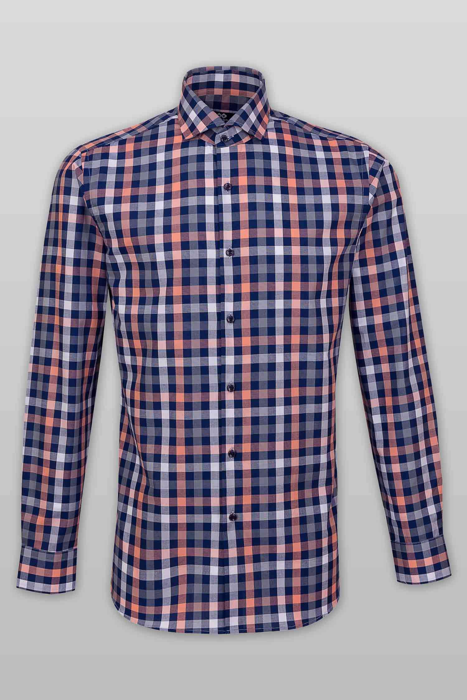 This “Roco” dress shirt by Zingfiniti is specially crafted from premium Giza cotton for exceptional comfort and luxury feel. Decorated in a check block pattern in blue, grey and peach, this shirt will make a sharp addition to your weekday wardrobe. This shirt strikes an elegant balance between luxury feel and incredible performance. The shirt fabric and style gives it a contemporary, downtown appeal when ironed up or you can wear it more relaxed with a pair of jeans. This slim fit shirt features a cutaway collar and barrel cuffs with adjustable buttons. We offer complimentary Zingfiniti Suit Cover and Sewing Kit with spare buttons & collar bones for extra care and protection. Experience the luxurious, soft and fine feel of these shirts.