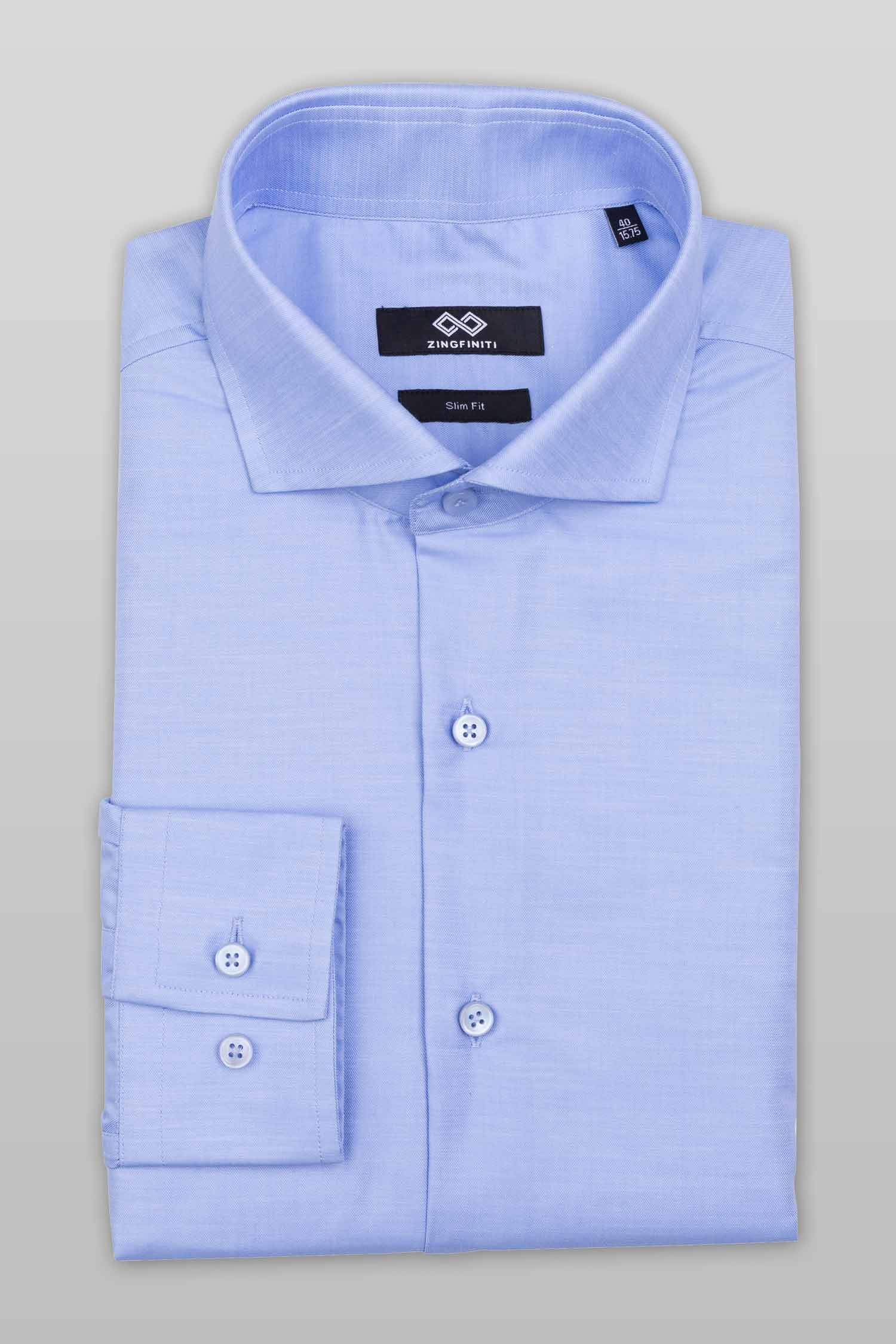 This “Dash” dress shirt by Zingfiniti is specially crafted from premium Giza cotton for exceptional comfort and luxury feel. Decorated in a fine twill pattern in blue, this shirt will make a sharp addition to your weekday wardrobe. This shirt strikes an elegant balance between luxury feel and incredible performance. The shirt fabric and style gives it a contemporary, downtown appeal when ironed up or you can wear it more relaxed with a pair of jeans. This slim fit shirt features a cutaway collar and barrel cuffs with adjustable buttons. We offer complimentary Zingfiniti Suit Cover and Sewing Kit with spare buttons & collar bones for extra care and protection. Experience the luxurious, soft and fine feel of these shirts.