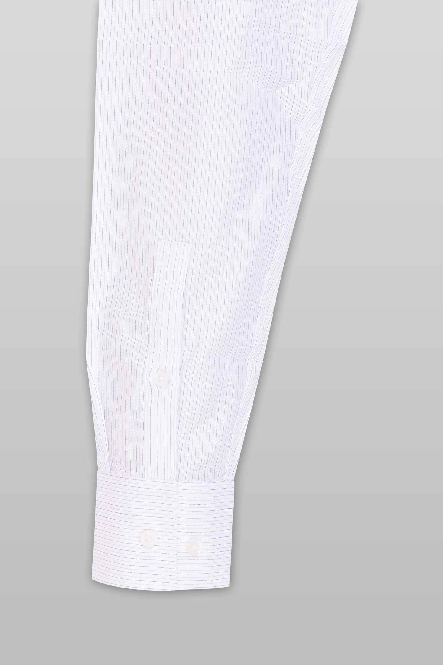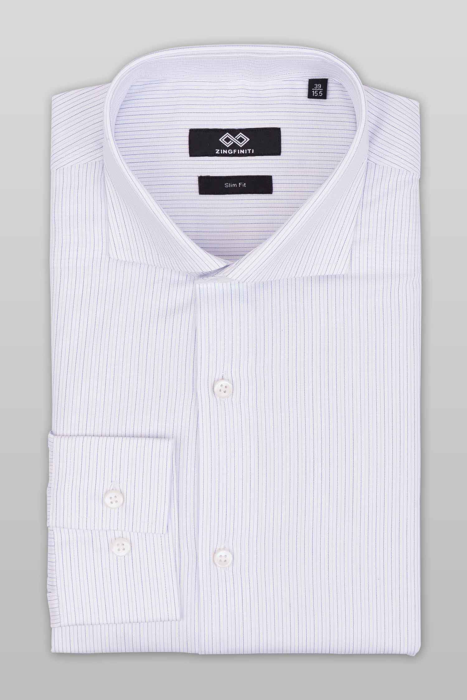 This “Iker” dress shirt by Zingfiniti is specially crafted from premium Giza cotton for exceptional comfort and luxury feel. Decorated in a fine stripe pattern in blue and white, this shirt will make a sharp addition to your weekday wardrobe. This shirt strikes an elegant balance between luxury feel and incredible performance. The shirt fabric and style gives it a contemporary, downtown appeal when ironed up or you can wear it more relaxed with a pair of jeans. This slim fit shirt features a cutaway collar and barrel cuffs with adjustable buttons. We offer complimentary Zingfiniti Suit Cover and Sewing Kit with spare buttons & collar bones for extra care and protection. Experience the luxurious, soft and fine feel of these shirts.