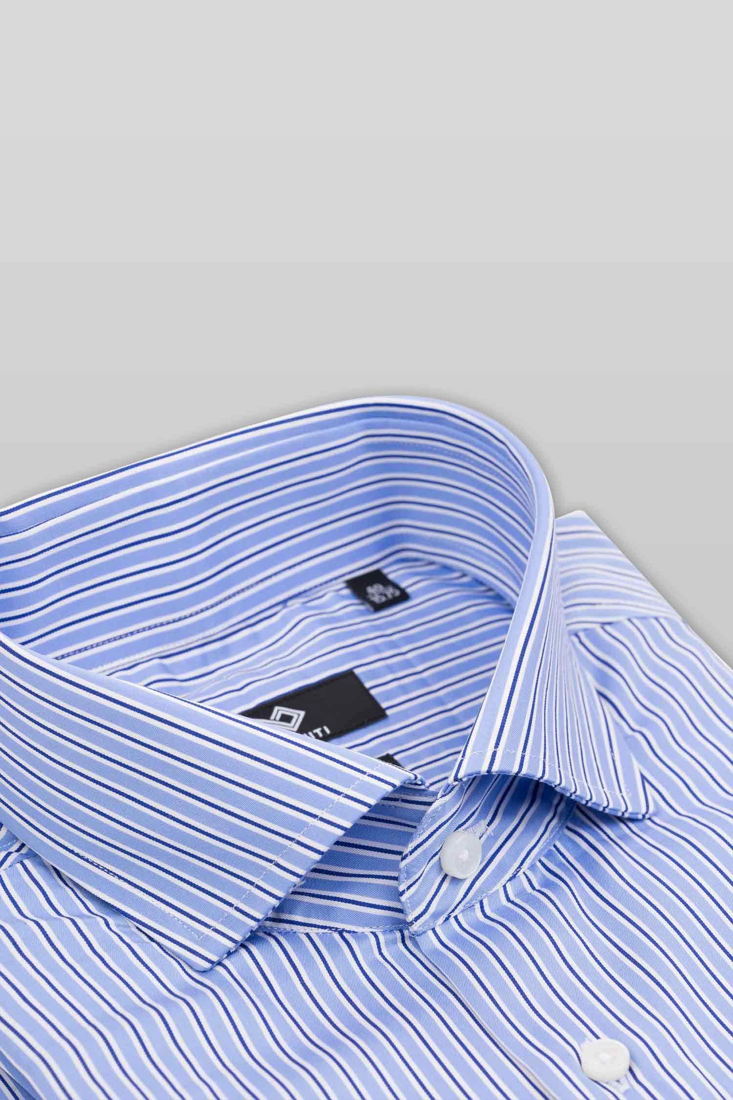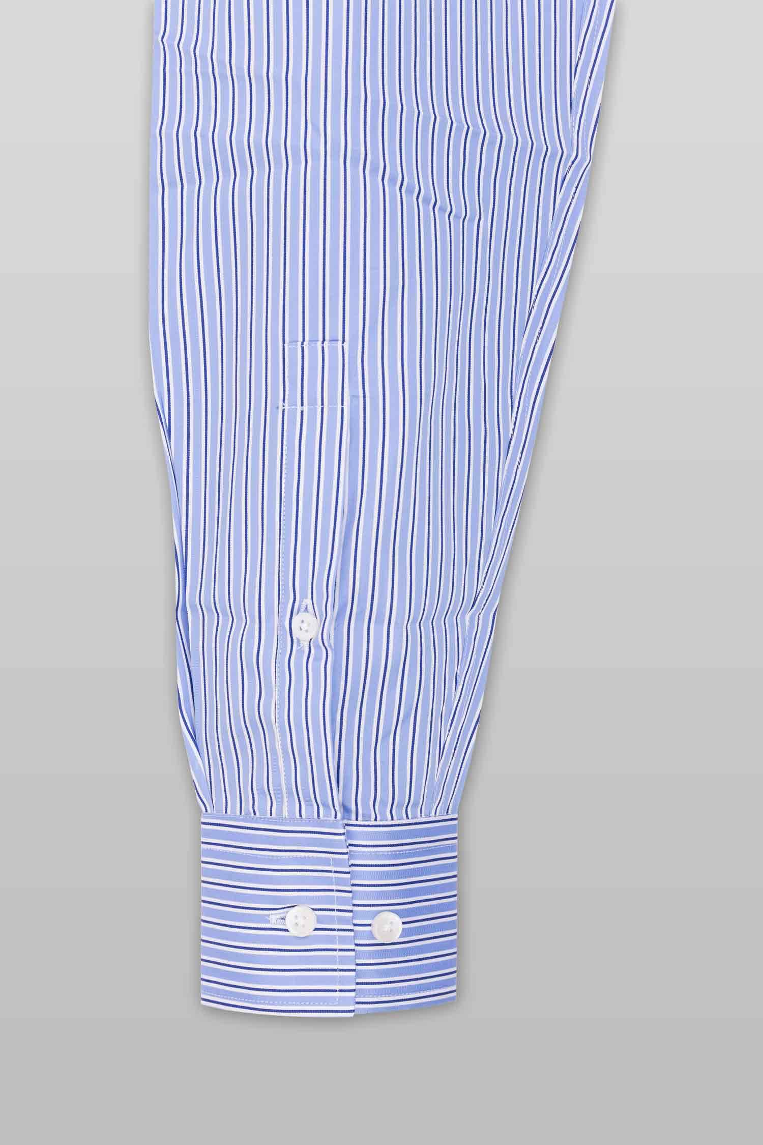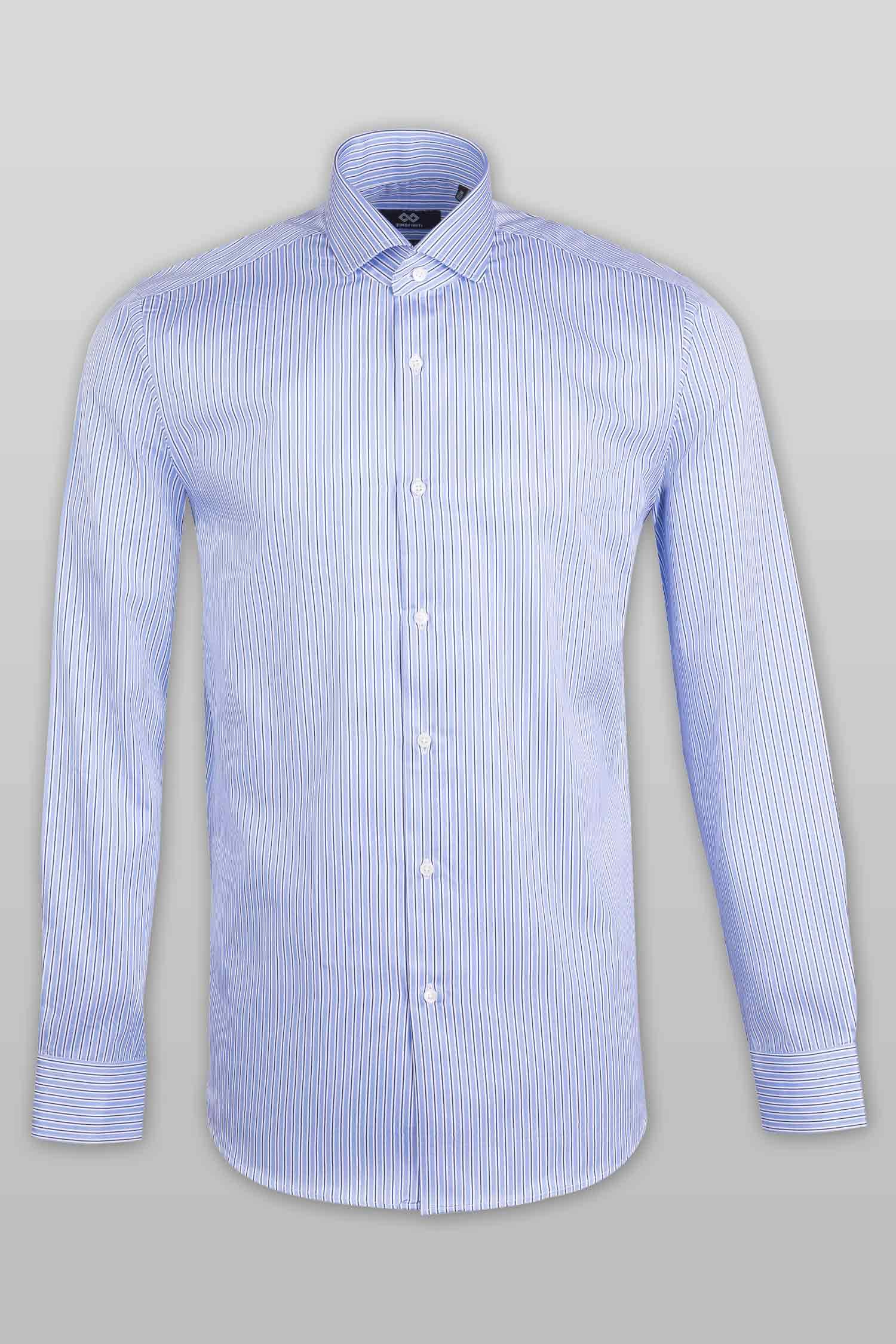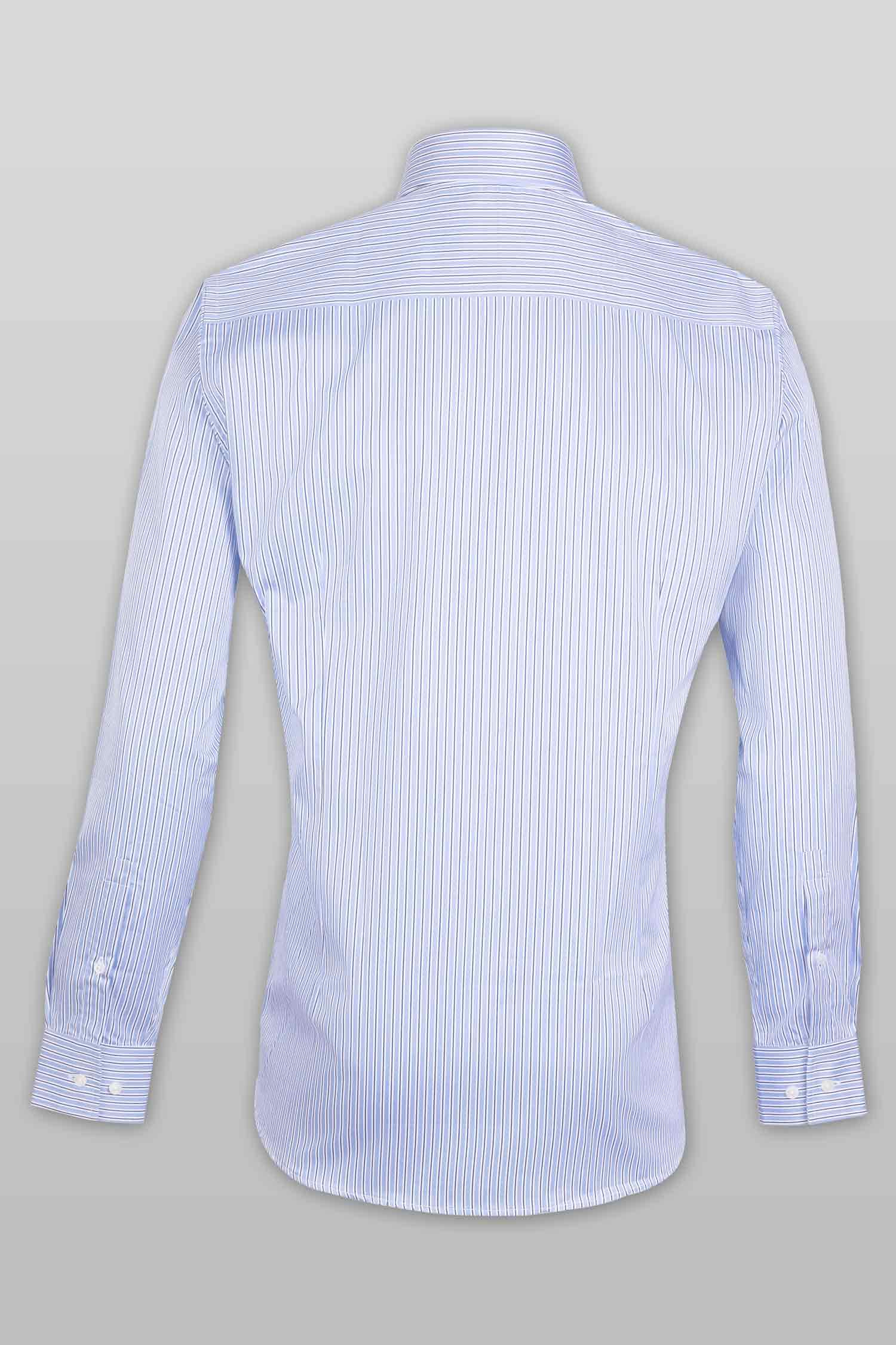 This “Ranger” dress shirt by Zingfiniti is specially crafted from premium Giza cotton for exceptional comfort and luxury feel. Decorated in a bold stripe pattern in blue, black and white, this shirt will make a sharp addition to your weekday wardrobe. This shirt strikes an elegant balance between luxury feel and incredible performance. The shirt fabric and style gives it a contemporary, downtown appeal when ironed up or you can wear it more relaxed with a pair of jeans. This slim fit shirt features a cutaway collar and barrel cuffs with adjustable buttons. We offer complimentary Zingfiniti Suit Cover and Sewing Kit with spare buttons & collar bones for extra care and protection. Experience the luxurious, soft and fine feel of these shirts.