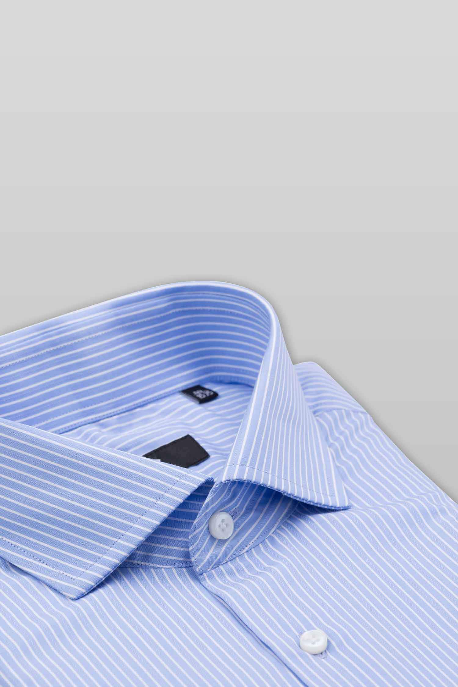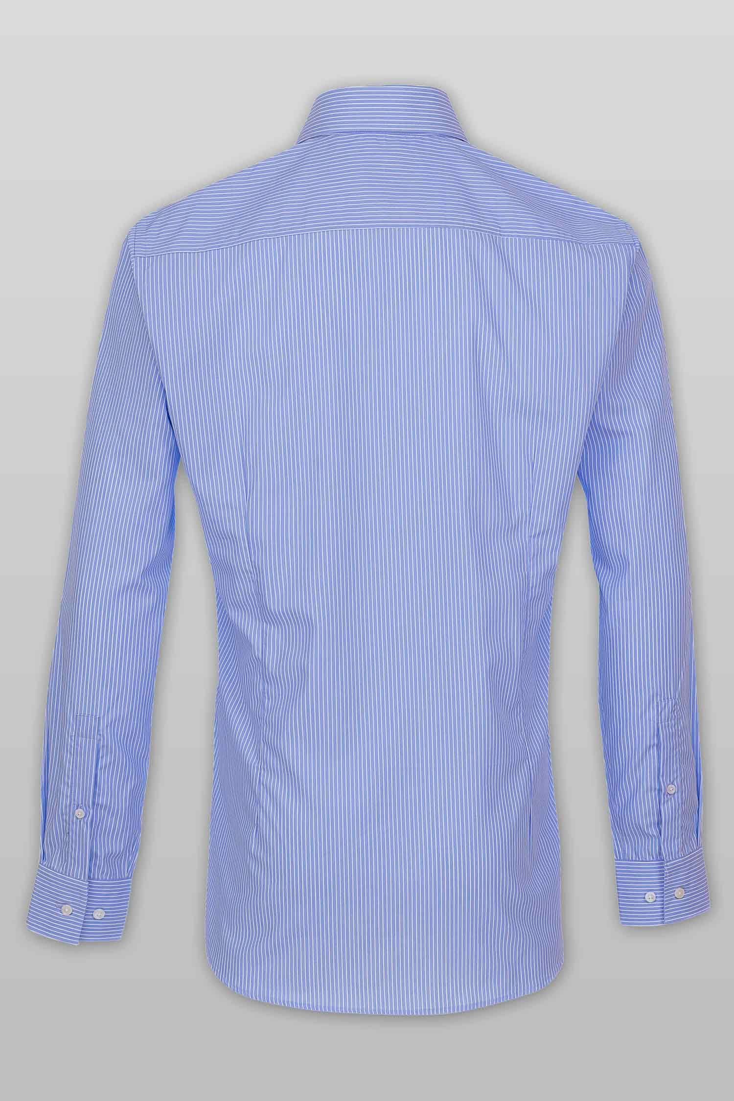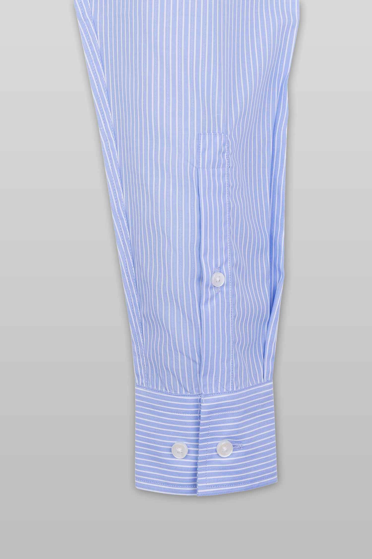This “Luther” dress shirt by Zingfiniti is specially crafted from premium Giza cotton for exceptional comfort and luxury feel. Decorated in a fine stripe pattern in blue and white, this shirt will make a sharp addition to your weekday wardrobe. This shirt strikes an elegant balance between luxury feel and incredible performance. The shirt fabric and style gives it a contemporary, downtown appeal when ironed up or you can wear it more relaxed with a pair of jeans. This slim fit shirt features a cutaway collar and barrel cuffs with adjustable buttons. We offer complimentary Zingfiniti Suit Cover and Sewing Kit with spare buttons & collar bones for extra care and protection. Experience the luxurious, soft and fine feel of these shirts.
